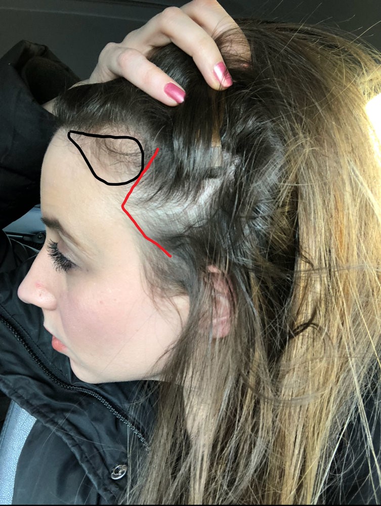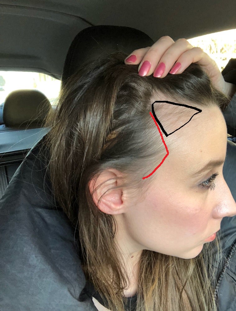 Yep, the area highlighted in black used to be all filled in with normal healthy hair. My entire sides have receded a bit as well and all over my hair thinned out and I have visible vellus hairs not just at my temples but also all over my scalp. I honestly don't know how else to relax after trying everything I previously mentioned. I don't even know what I enjoy anymore, I'm pretty depressed so I know that's something I need to get under control as the rest of my life seems to be fairly balanced and I have a good diet, etc. I just feel really hopeless right now, everything in my life feels like a dead end and now on top of running out of time to meet someone so I can start a family before I start transitioning into peri-menopause, I have to deal with hair loss/balding as a new barrier, as if dating isn't already difficult enough. I feel like men won't be too receptive of a woman balding in a Norwood pattern. It's hard to believe how aggressive my hair loss rate is, the photos you highlighted are from the winter and my hair is much worse since those were taken. I'm losing the hair all along my forelock now. Basically the entire front of my scalp decided it wants to be bald. :(