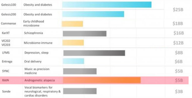 order of market potential, RAIN sits next to the botttom at 5 Billion; 20 billion below Gelesis.