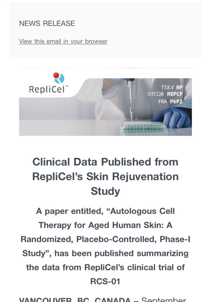 Even though its only for RCT-01 and RCS-01, it doesn't seem like Replicel is going anywhere at this time even though as a R&D company they aren't making money as a normal company, but that how is it with R&D you can't make money of nothing yet, even though they should be able to launch their RCI-02 next year and that might be able to bring in money, who knows.