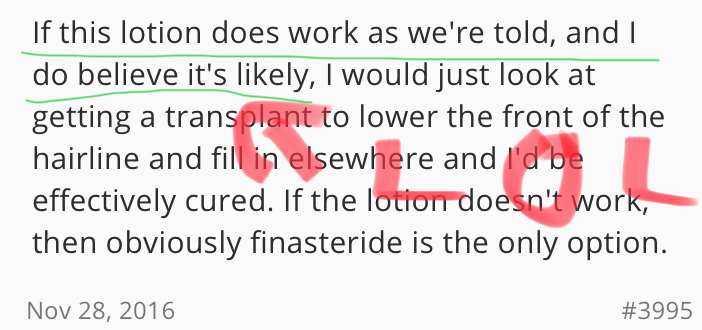 Possibility of it working, that it means he went whole hog into the lotion. In the early days there was always the possibility of it working. It was new. He nowhere approached the ravenous devotion of most of the people on that thread.