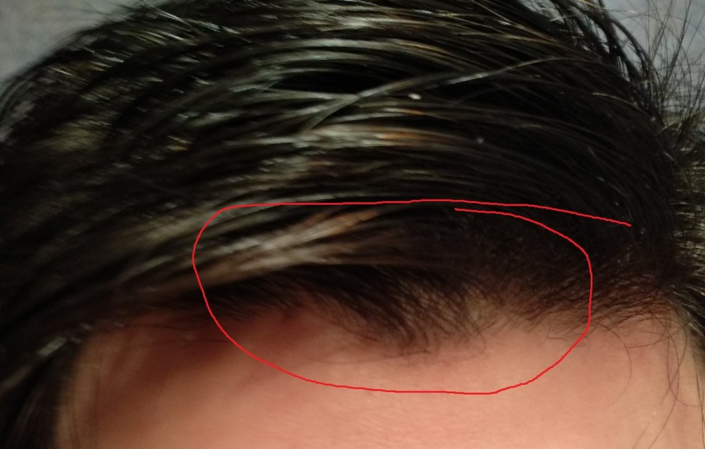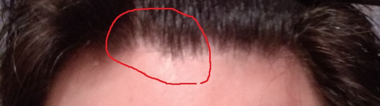 All that looks good, feels good, i feel my hair stronger. BUT, and there goes the big but, I noticed that some spots are apearing on my hair, where hair used to be (although im not sure about it, I dont quite remember if my hairline was already like that). I attached some pictures to show, my hair is wet on them, and the side picture is to show the spacing of my hair, and that it looks like balding if I do that, so that also confuses my when I look on the mirror. But it was always like that.