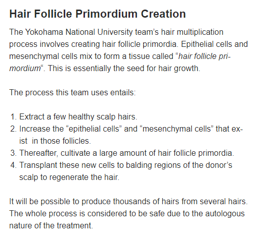 Good for Yokohama, cloning technology is out there now, number of companies trying hair cloning should grow, we can't rely on one or two, Stemson is too slow.