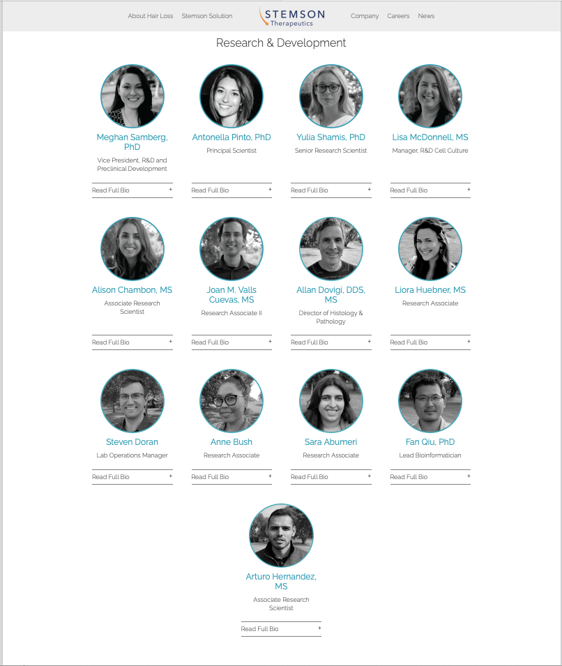 Reposting this because of all the spam in the last postsStemson's R&D team keeps growing. There are 13 people in it now, compared to I think 7 at the beginning of this year. This is a good sign, and they still have open job listings so we can expect the company will keep growing.