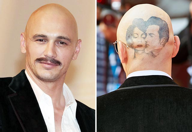 brad pit is a feminine pretty boy just like franco. both would look atrocious bald. only a very specific type can pull off the bald look which has a masculine face+skull+height+big frame. brad pitt dosent have it. he has a pretty face and hair. thats it. that alone isnt enough to look good bald.