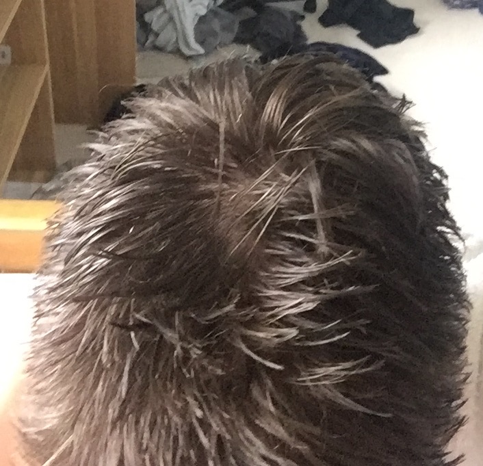 6 weeks in and I could feel stubble, small prickly hairs. I was ****ing ecstatic. My existing hairs became thicker especially the vertex area, and shedding stopped – (almost completely) but I was still skeptical, I thought it must’ve been a delayed reaction to minoxidil and ketoconazole. My frontal hairline grew a few hairs initially because that’s where I was using it the most, but I wanted to see if this solution actually did anything so I started using it only on my left side and tilting my head to the right to make it pour down to the other side and the backwards to reach the rest of my scalp.
