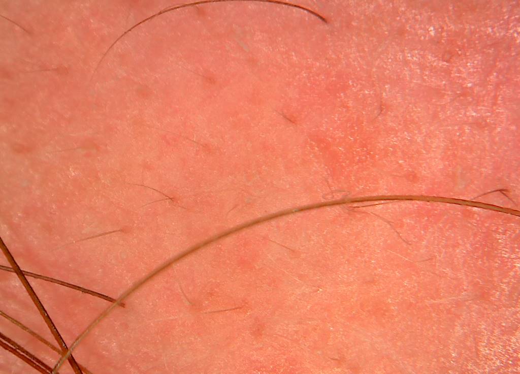 existing vellus hairs, it almost looks to me like the follicle is sputtering as it restarts growth. This is happening with a lot of