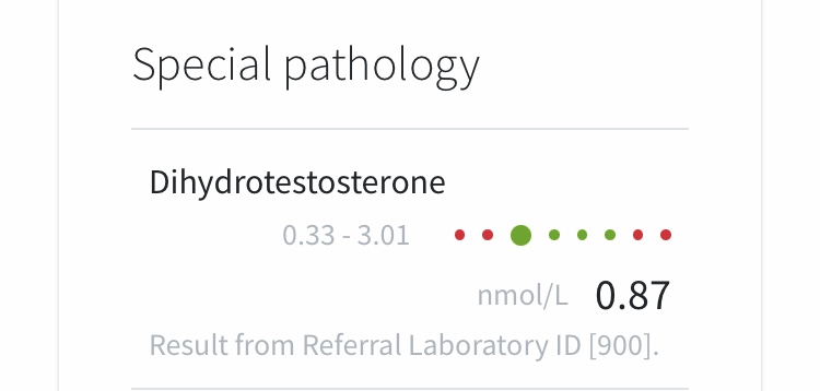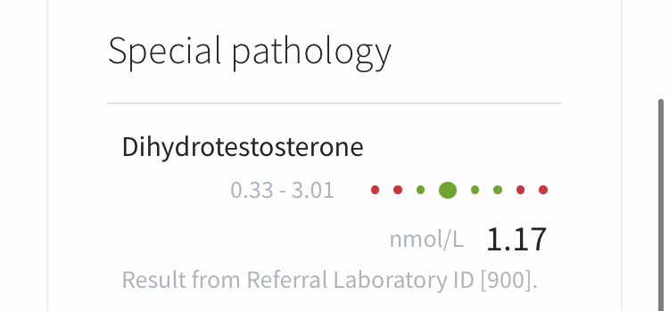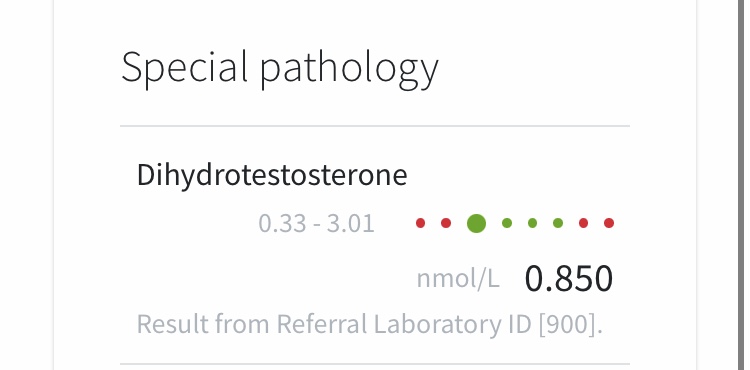 View attachment 159274View attachment 159275View attachment 159276 So as can be seen my results are pretty much in line with other results we have seen so far. After 3 months of using a very high dose of topical dutasteride (12.5mg topically/2.5ml of 0.5% parati liposomal) every week my DHT was reduction was 27.5% from baseline. Although this shows a clear build up, I don’t think this was a huge decrease considering the dose I was taking. I should also note that the test was taken 7 days after my last application, so my DHT would have had a little bit of time to recover after my final application.