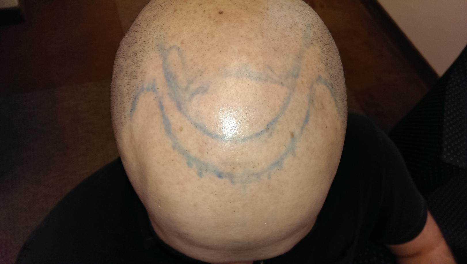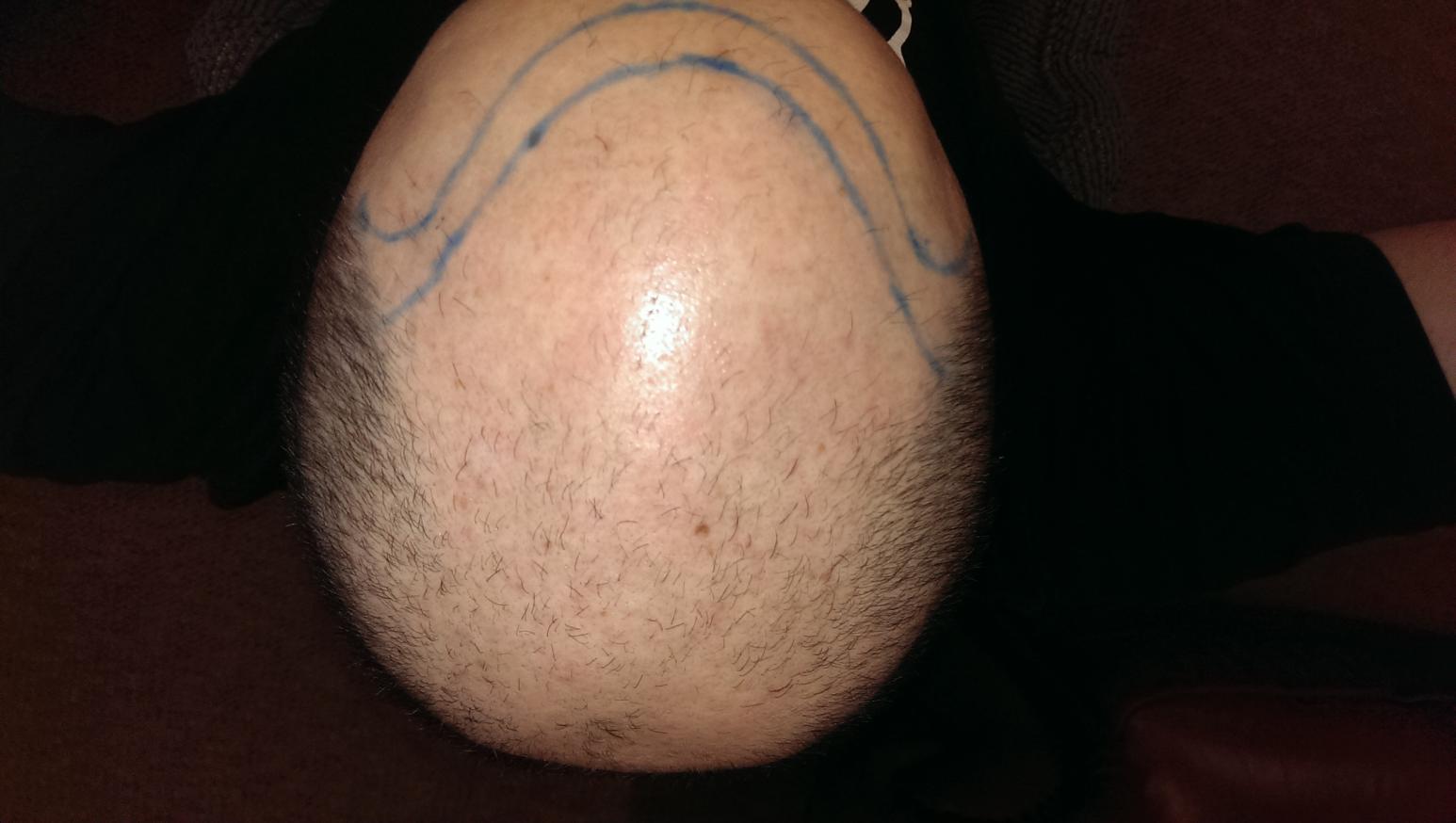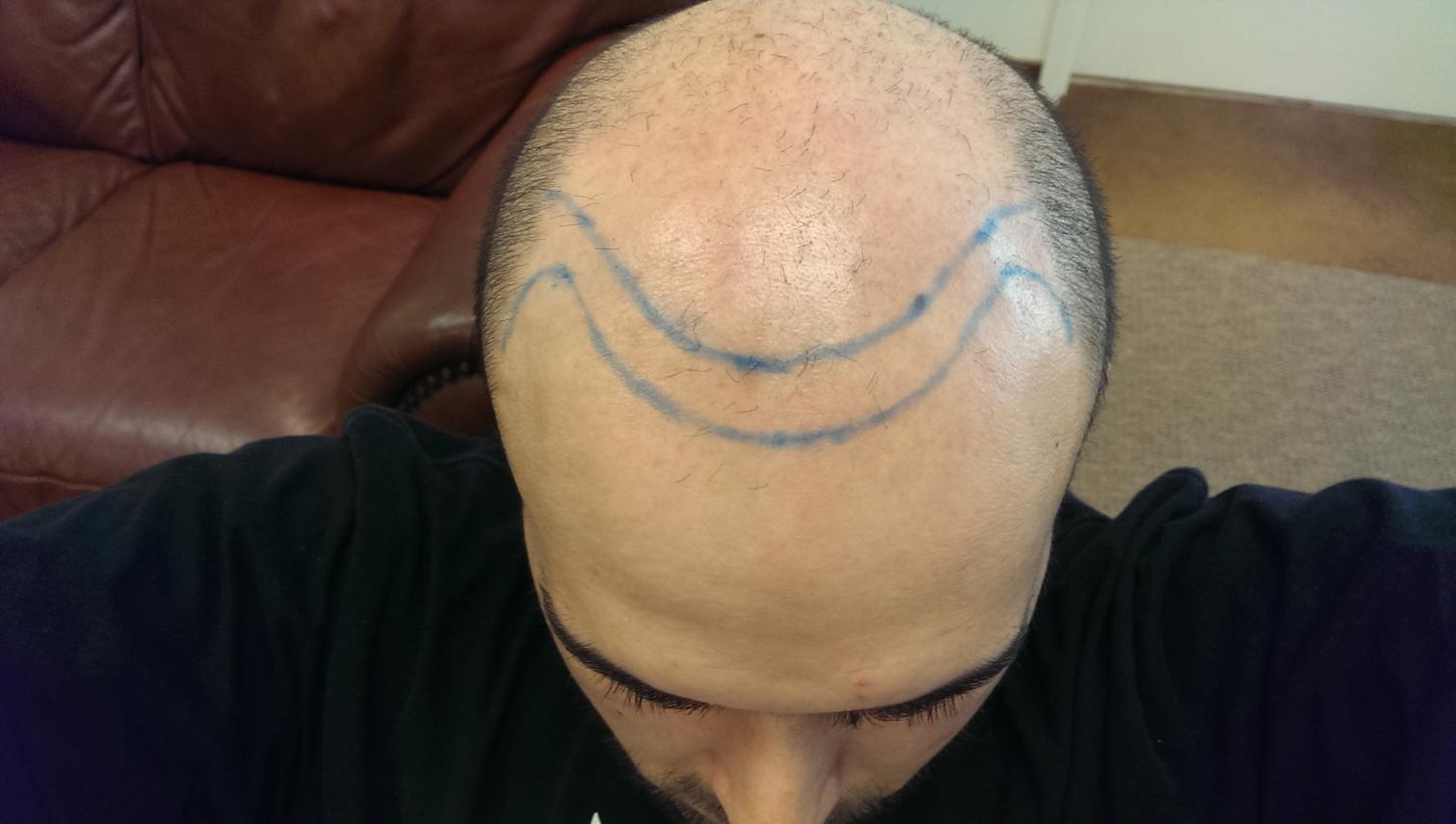 Here are the pictures that my doctor drew of the proposed hairline, which I will ask to make a little less wide so that the hairline is thicker.