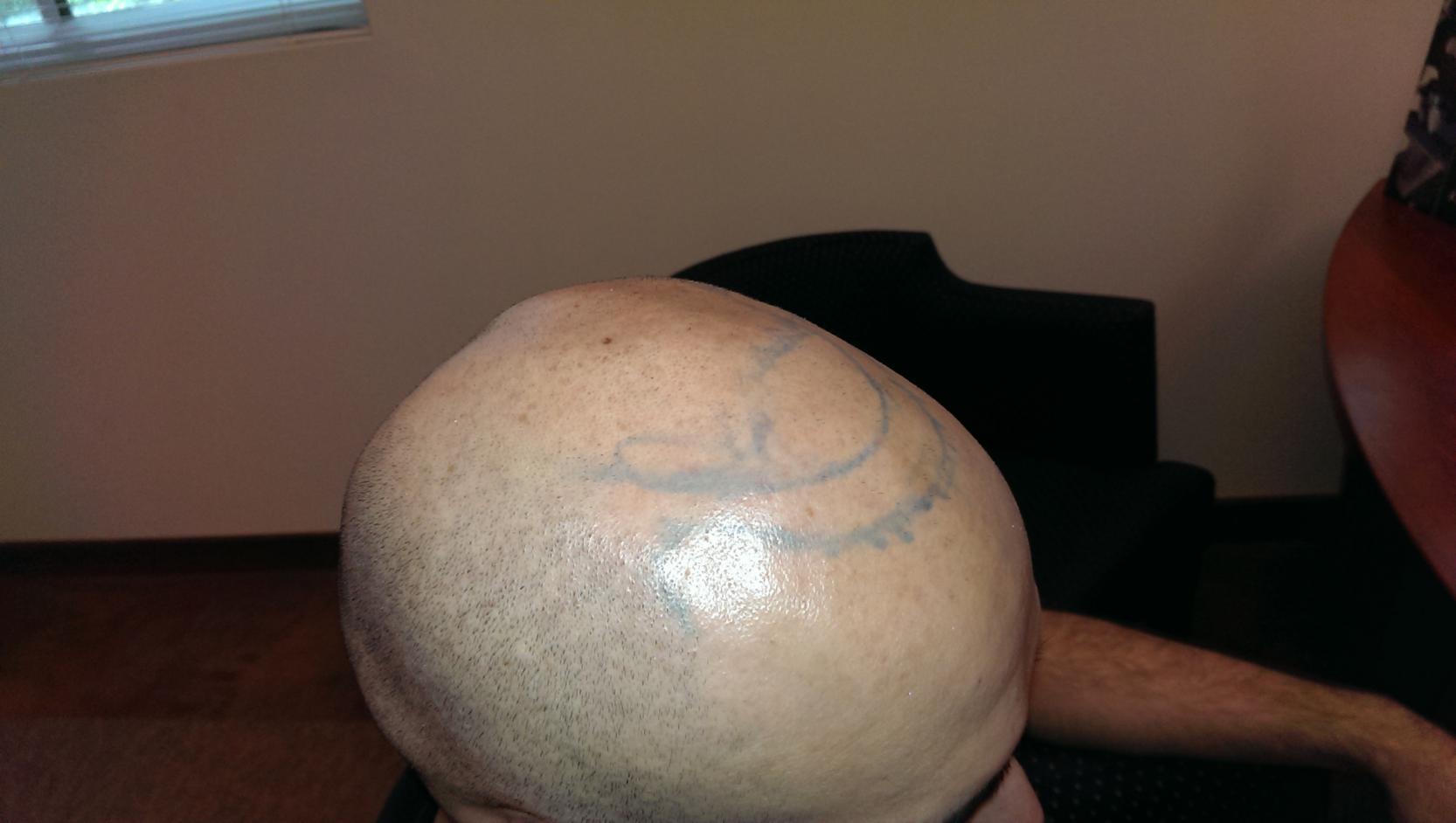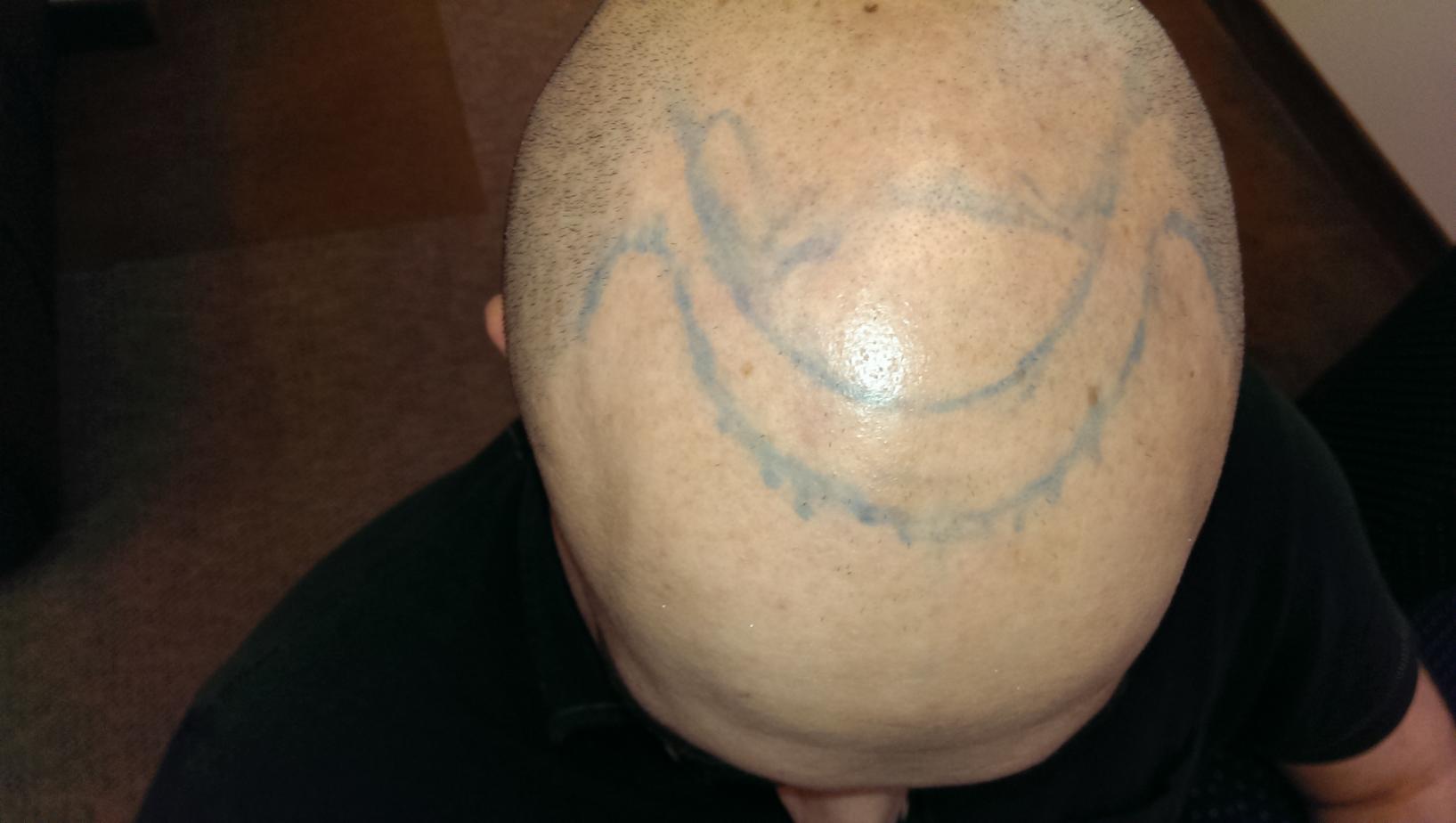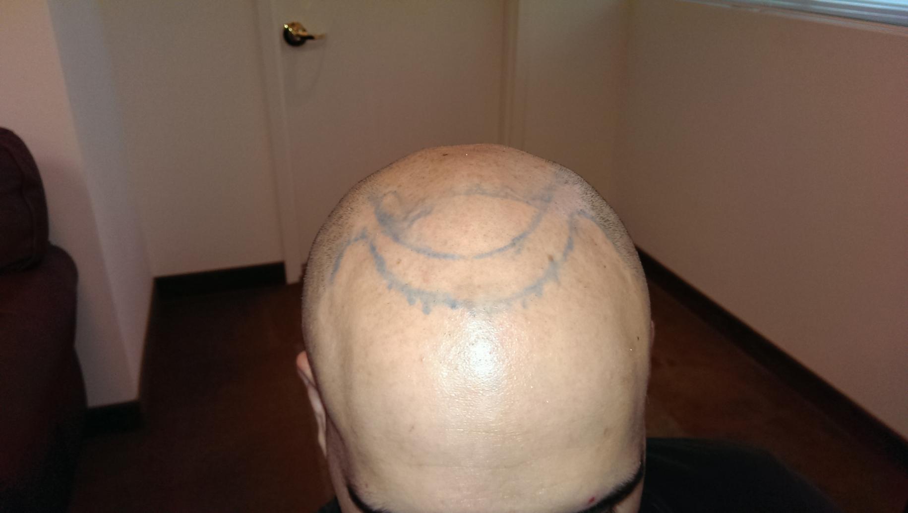 Here are the pictures that my doctor drew of the proposed hairline, which I will ask to make a little less wide so that the hairline is thicker.