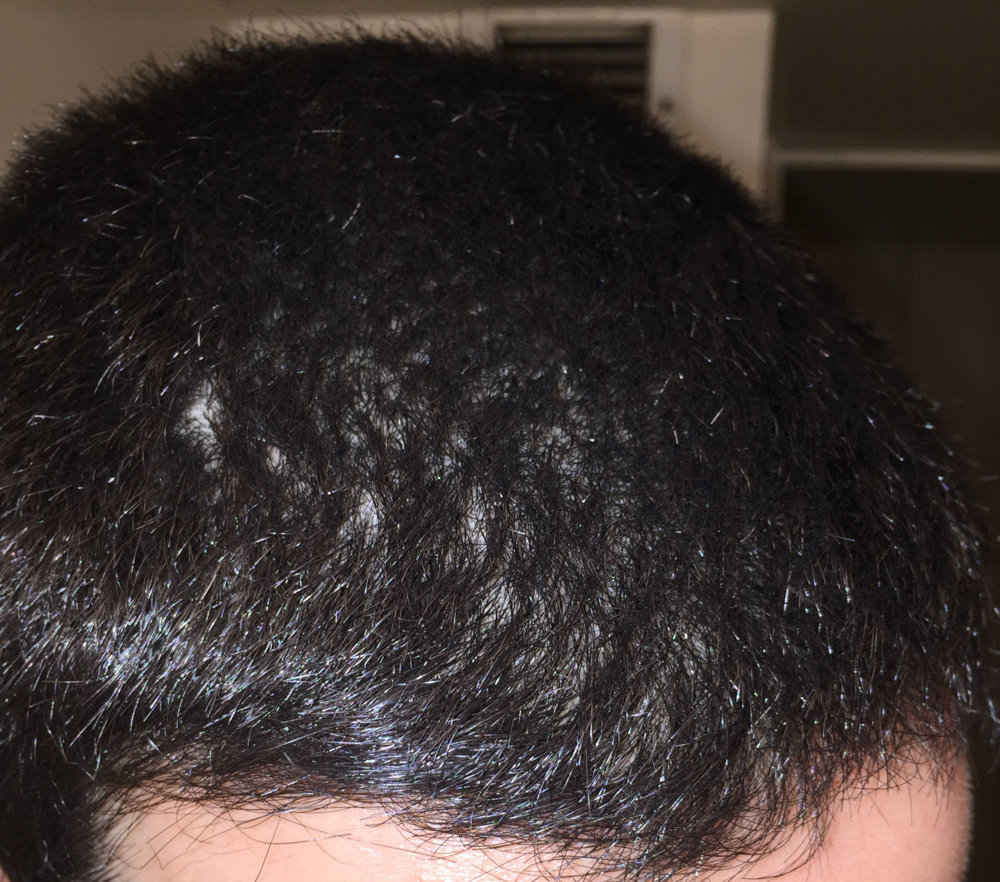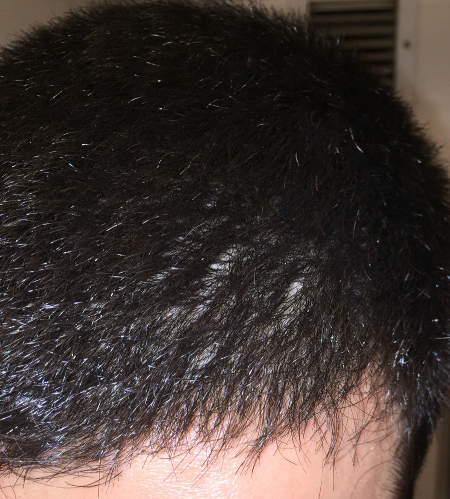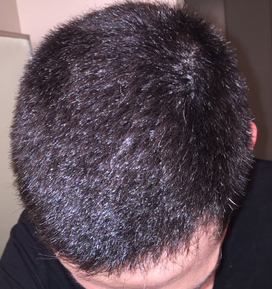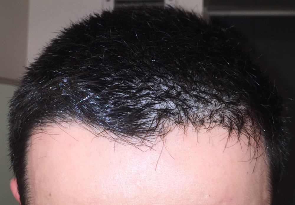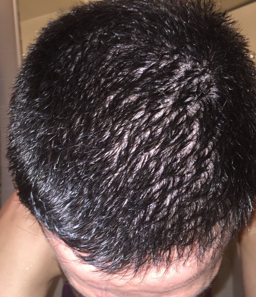 Finally I was brave enough to cut my hair shorter than ever, just to see my hairloss. Actually now I think I should not have done. I am almost 2 years with treatments (Finas + minoxidil), because I felt less density in the crown and some hairloss in my temples, specially my left one. But now that I have really short, I can even see diffuse hairloss all over the top. Here some photos, just after the shower and with wet hair. Depending on the angle of the photo you can clearly see.