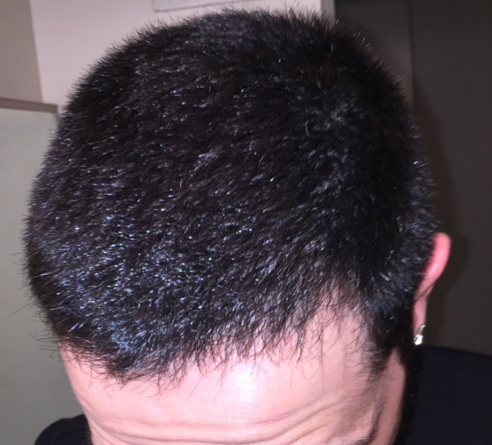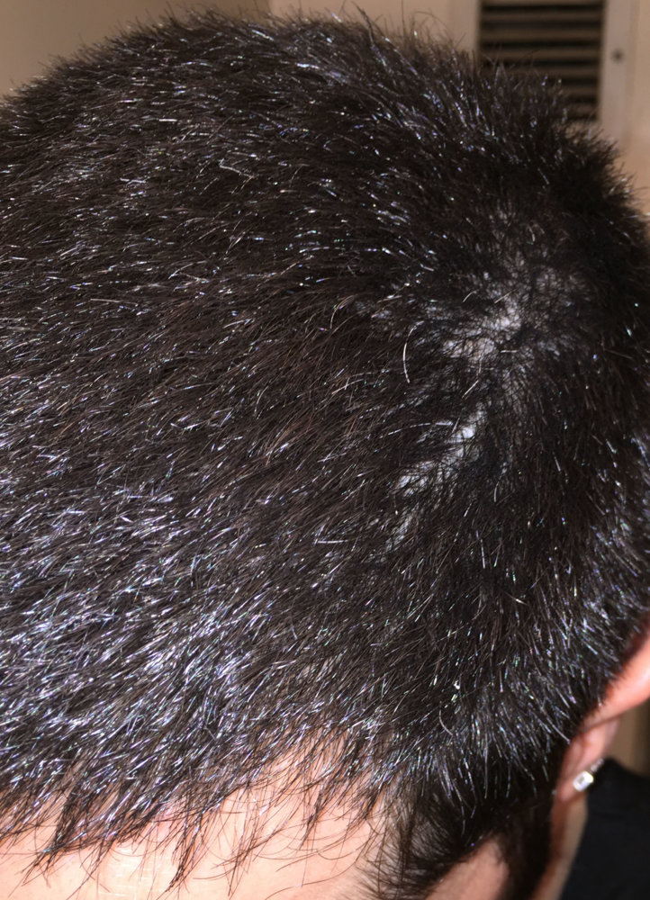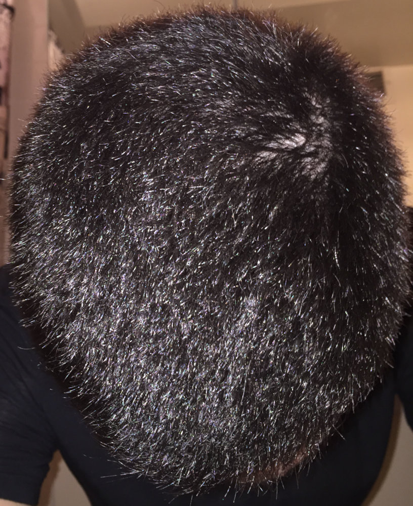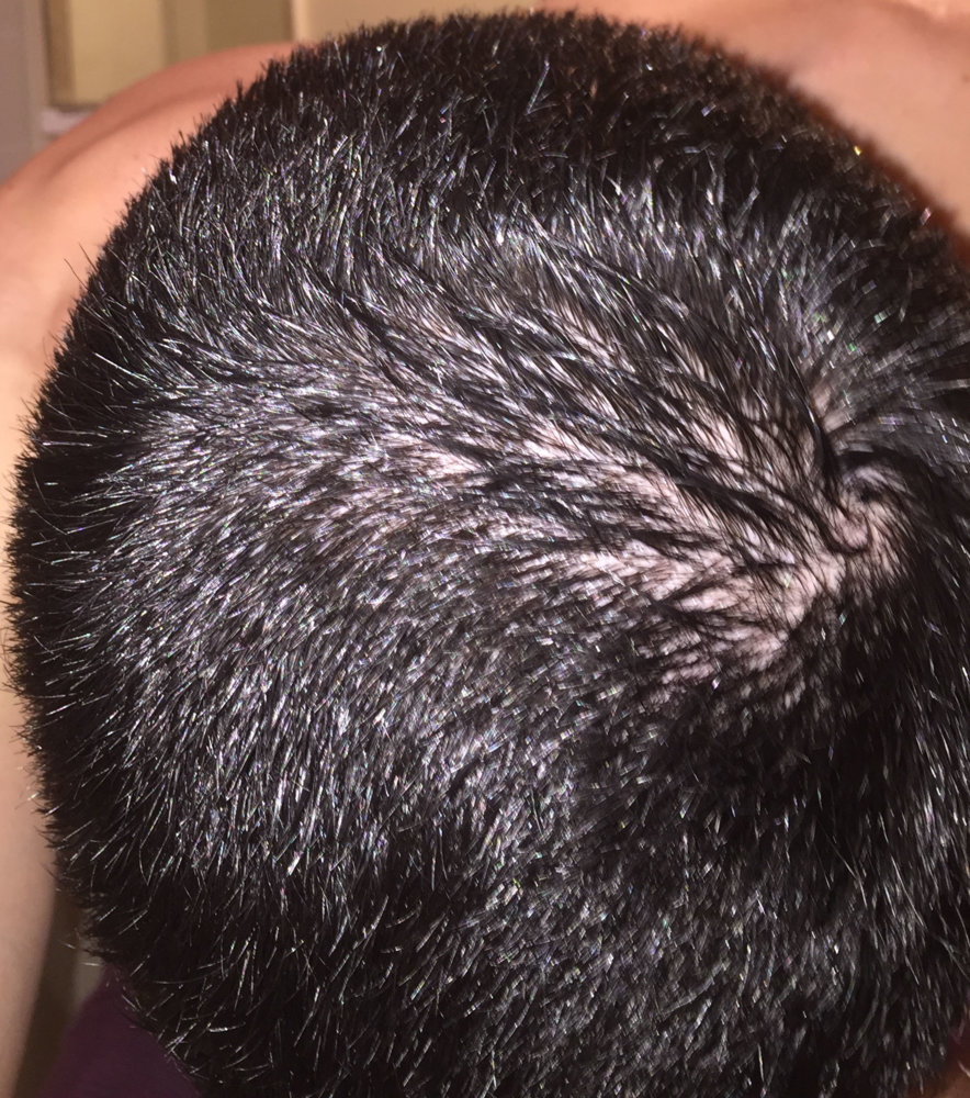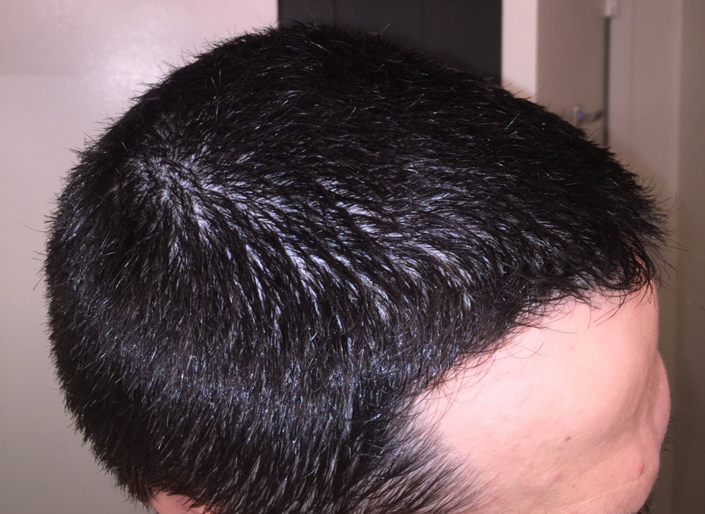 Finally I was brave enough to cut my hair shorter than ever, just to see my hairloss. Actually now I think I should not have done. I am almost 2 years with treatments (Finas + minoxidil), because I felt less density in the crown and some hairloss in my temples, specially my left one. But now that I have really short, I can even see diffuse hairloss all over the top. Here some photos, just after the shower and with wet hair. Depending on the angle of the photo you can clearly see.