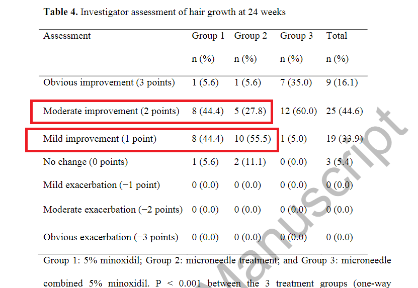 Yeah I'm gonna go ahead and say microneedling alone and minoxidil alone are about equally effective.