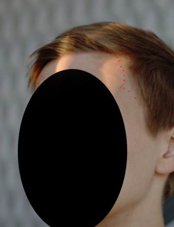 Here's pic from couple weeks ago for those interested. Left temple took some hit while on break. Red dots mark my natural hairline. I still have some babyhairs and normal hairs on that area but they thinned up a bit. Im quite positive im gonna regrow some back while on drugs again.