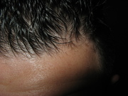 You can see all of the short, thin hairs all along the hairline which have been killed by the diffuse hair loss on the front. These have just turned terminal again, but have not yet reached their full thickness.