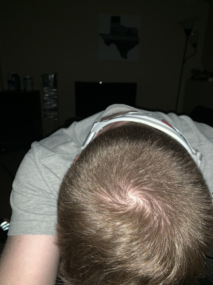 But then I got curious and decided to check my hair to see if I had any signs of balding, such as my hairline or my crown. Now I've always seemed to have receding temples and a widows peak since I was a kid. I'm not aware of anyone in my family being bald or even having crown loss. My dad is about 63 and although his hair is thinner, he doesn't seem to have any baldness going on.