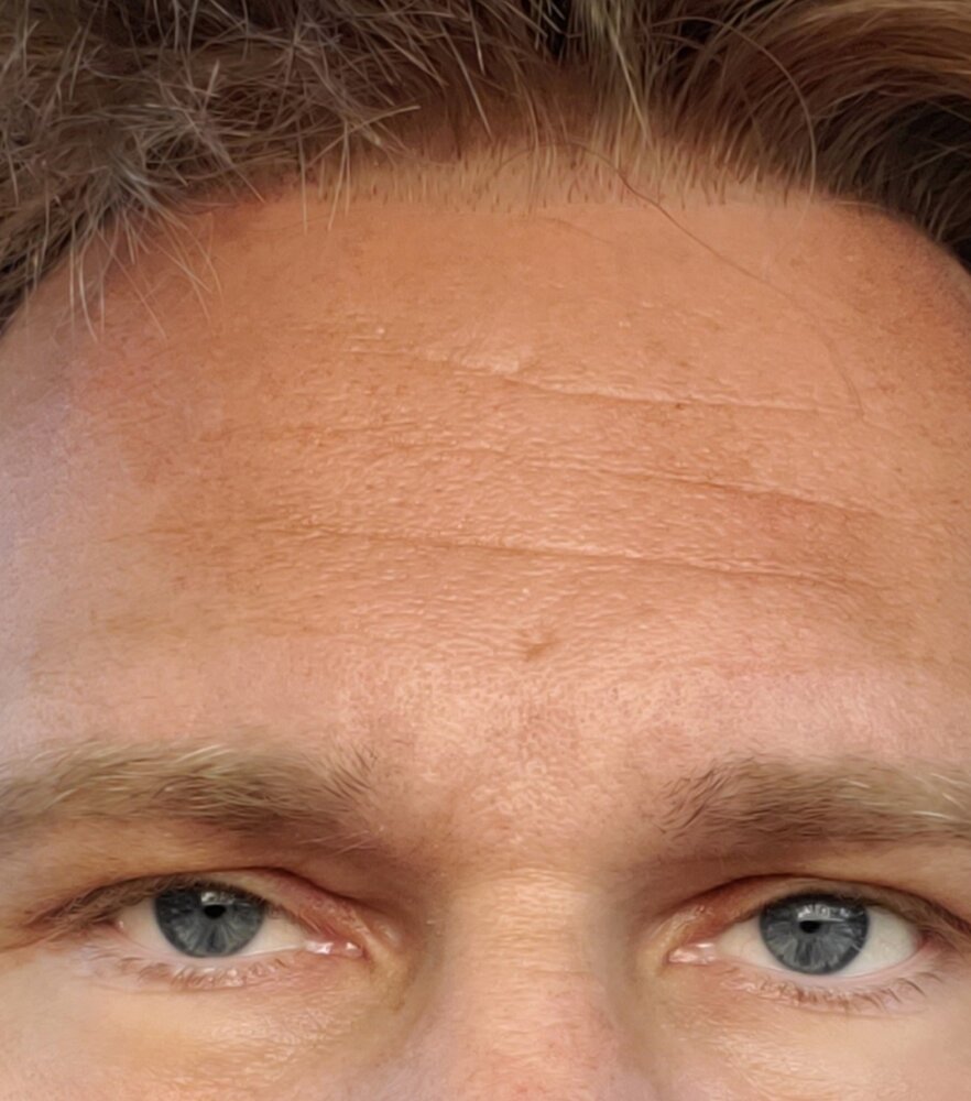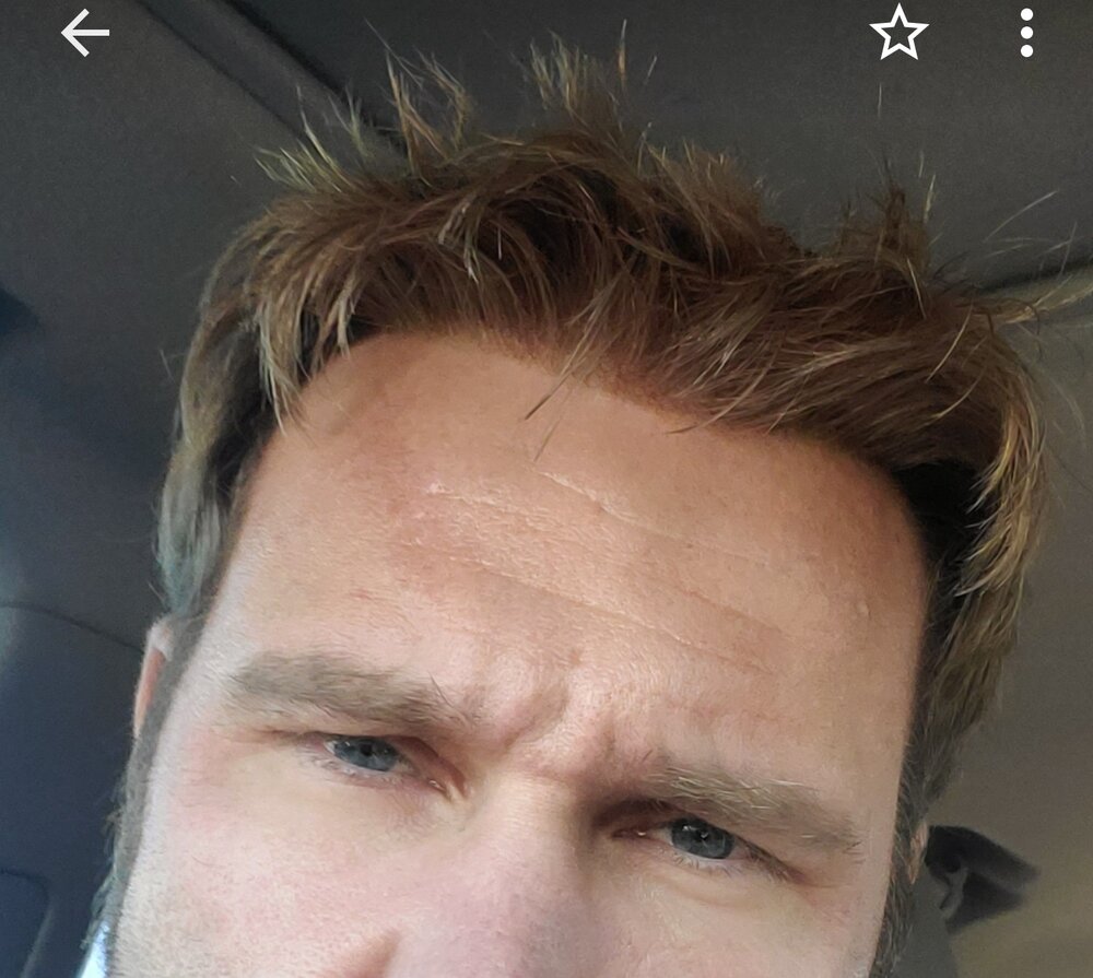 I wouldn't even worry about hair at that point, my mans is looking left and right at the same time LOL