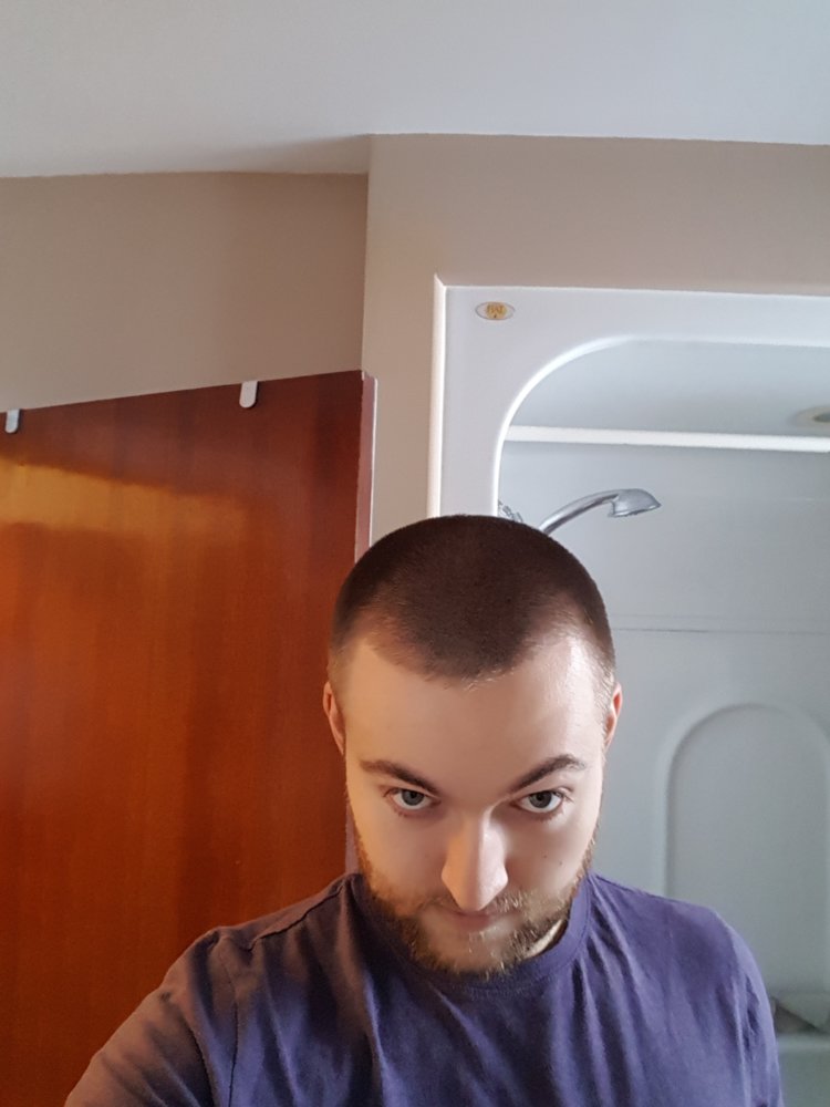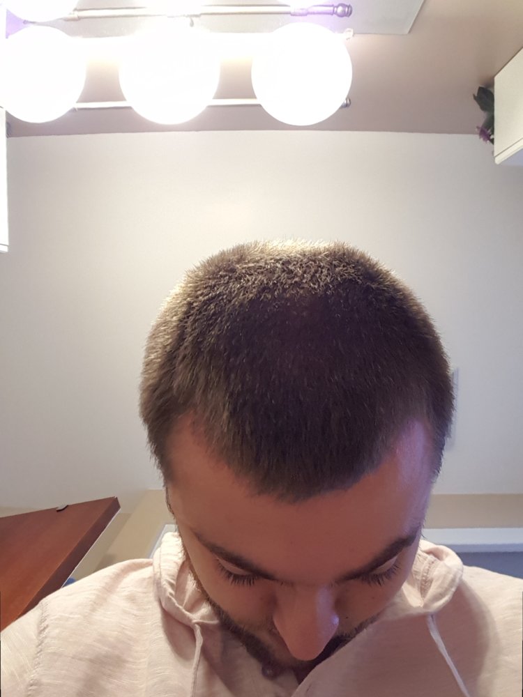 current hairline. 2018/11/27. After haircut number 2 guard buzz. left side more recessed. right side maybe got better. at this point im maintaining a hairline i hate having, and hate trying to style. Am i ever gonna get regrowth?
