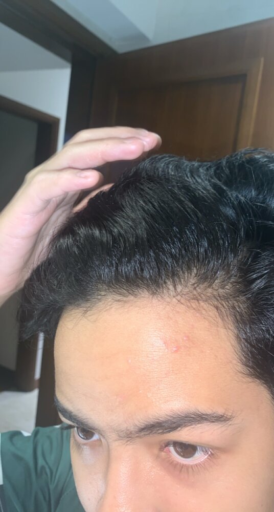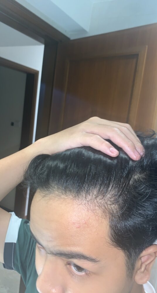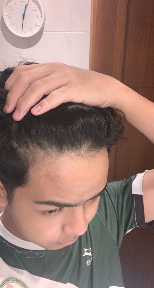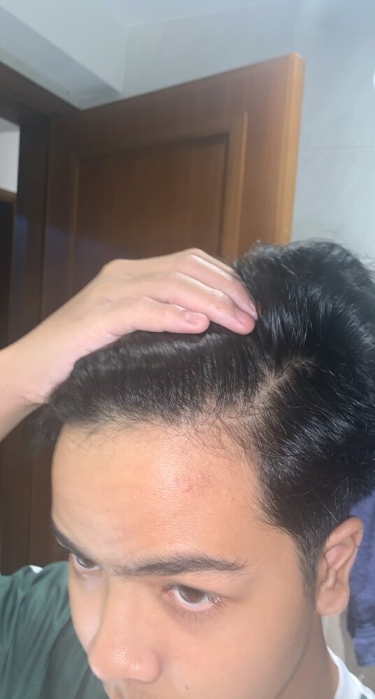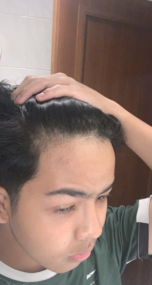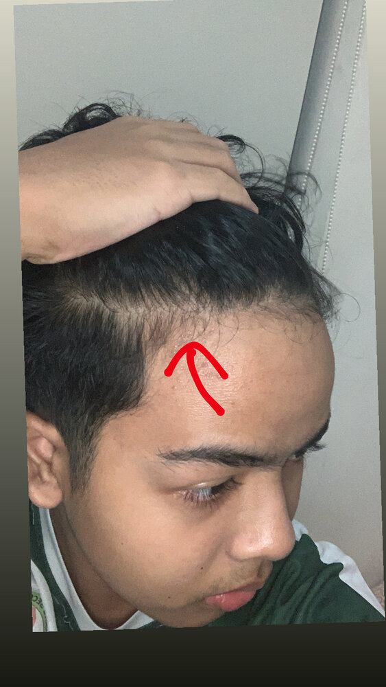 Look at the photo with the arrow. Does that indicate hairline thinning?Honest opinions only thanks for your replies will try to get off this forum