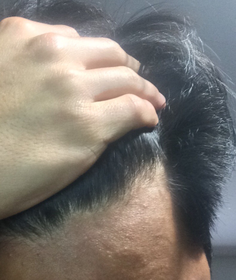 My dad is bald at 55 years old but on my mother side, her dad is 70 years old with a head full of hair. Is my hairline receding ?