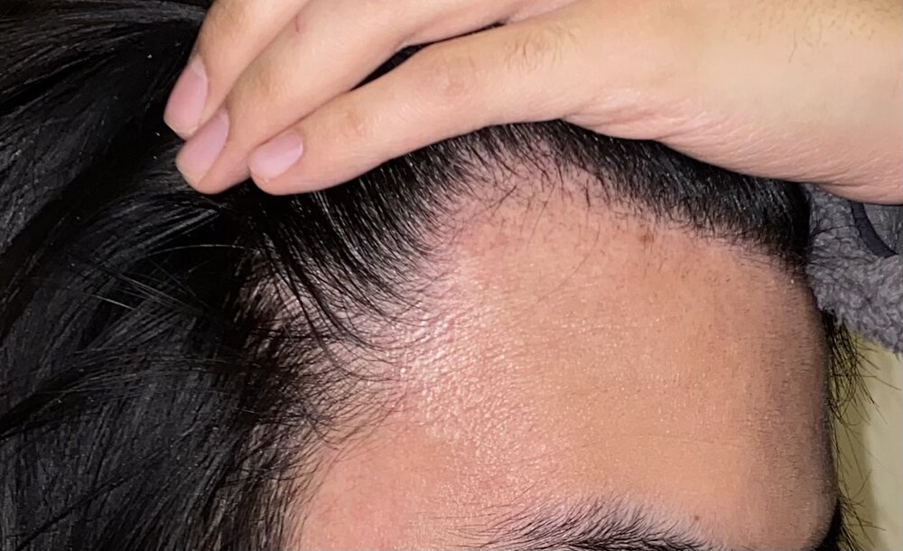 It looks to be receding, I can see some minaturised hairs, but it's still thick. Like a solid NW1.5