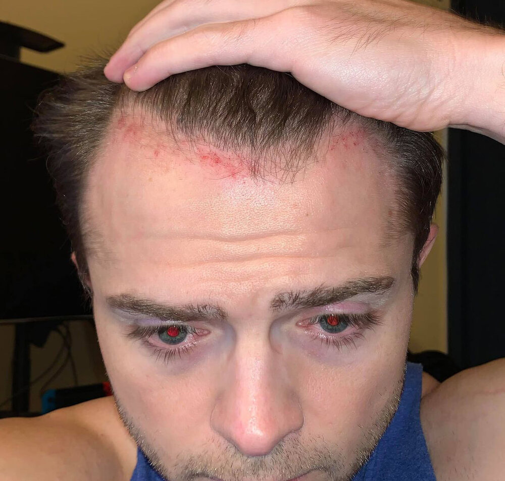 10 months in, heres how Im looking( Camera flash is on to show thinning as best as possible). Ignore the red dots, thats from micro-needling.