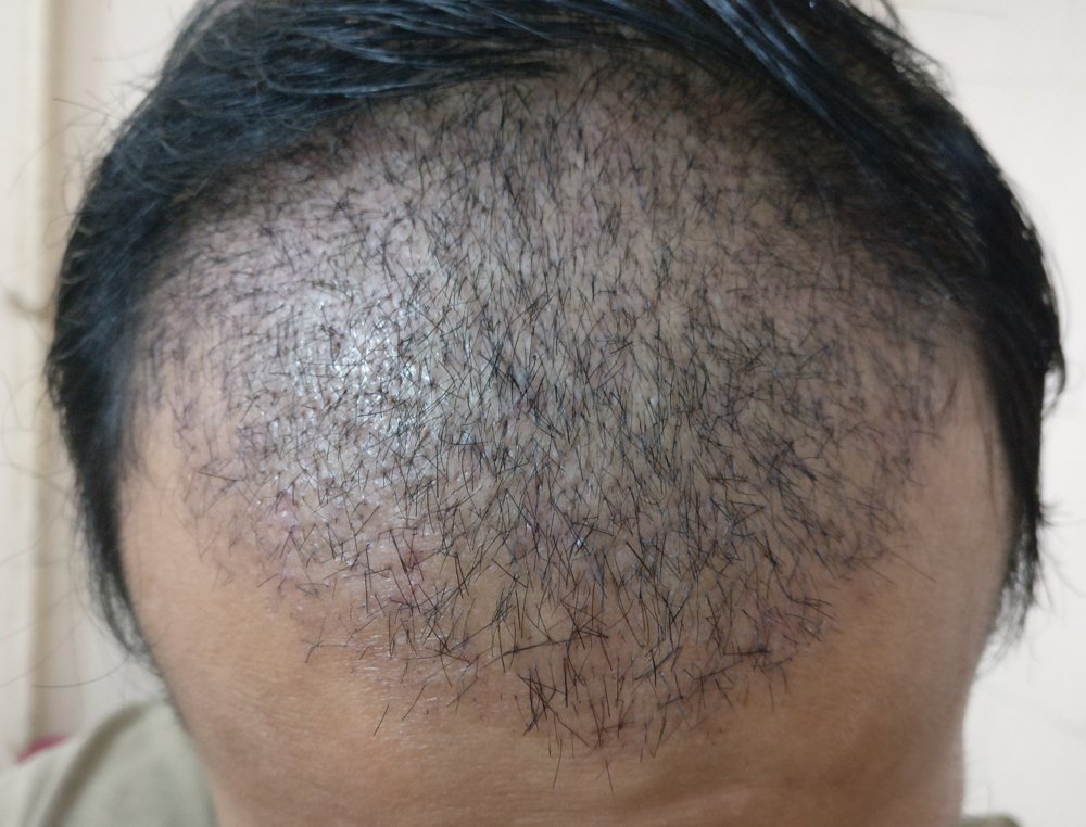 Recently I had a hair transplant with 3000 grafts. Once scabs appeared, washed them off after loosening up with oil. Image 1.