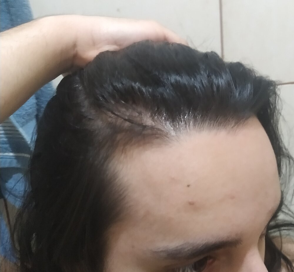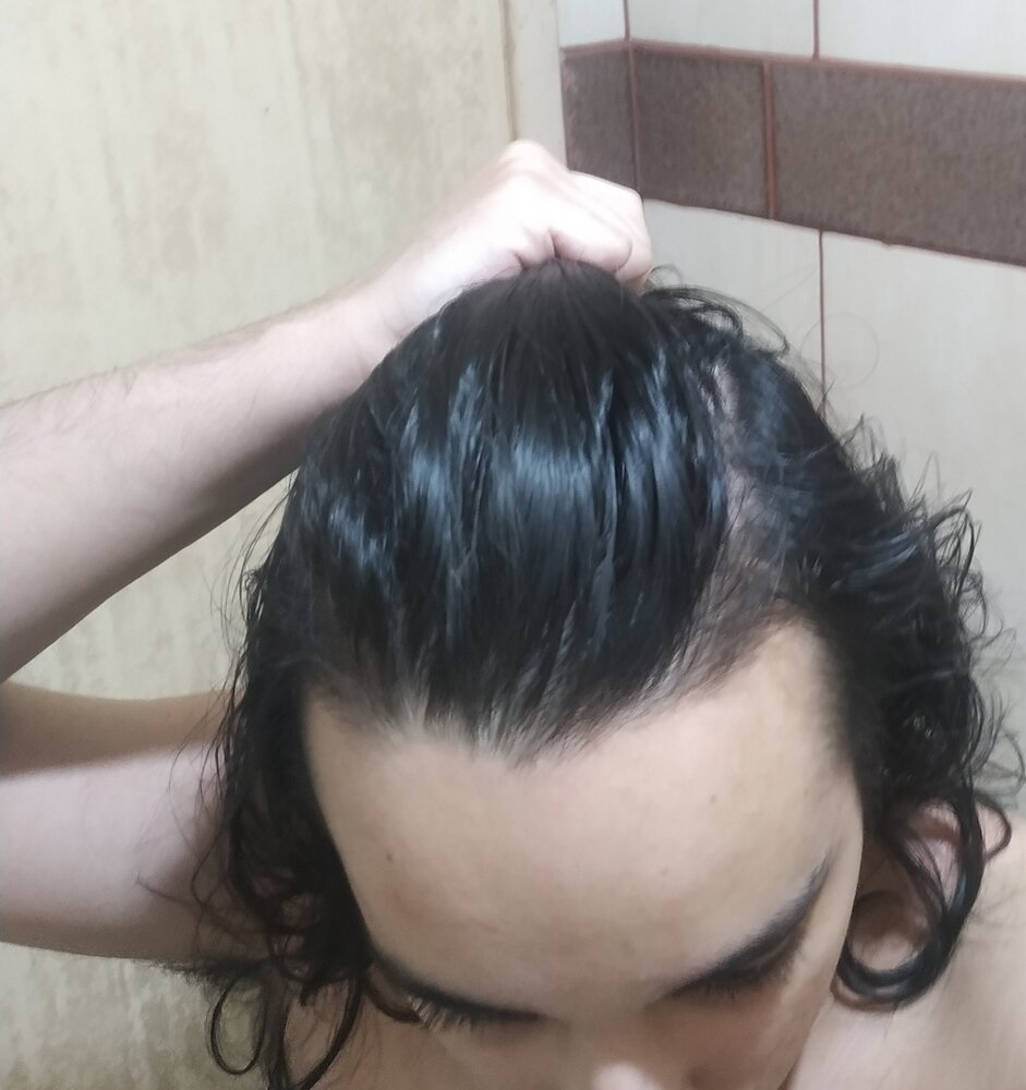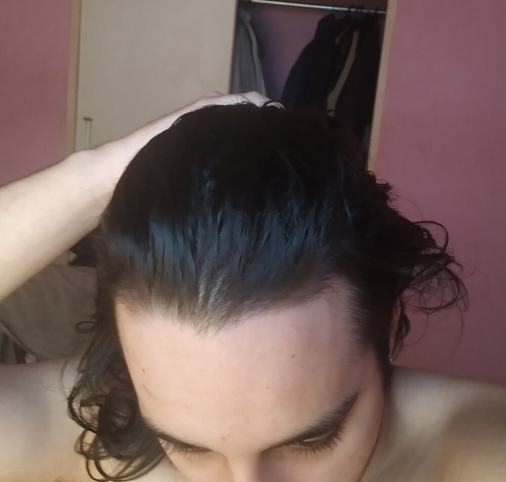 So,here is the Deal: I have been on finasteride for 2 months. The issue with my hair is the fact that whenever It gets a bit greasy,i can see thru the hair strands,mainly at the front of the hairline,with no crown thinning,apparently. When my hair is dry,there is no visible diffuse pattern,unless i take a picture with the flash on. Based on these pictures alone,what would be your guess?