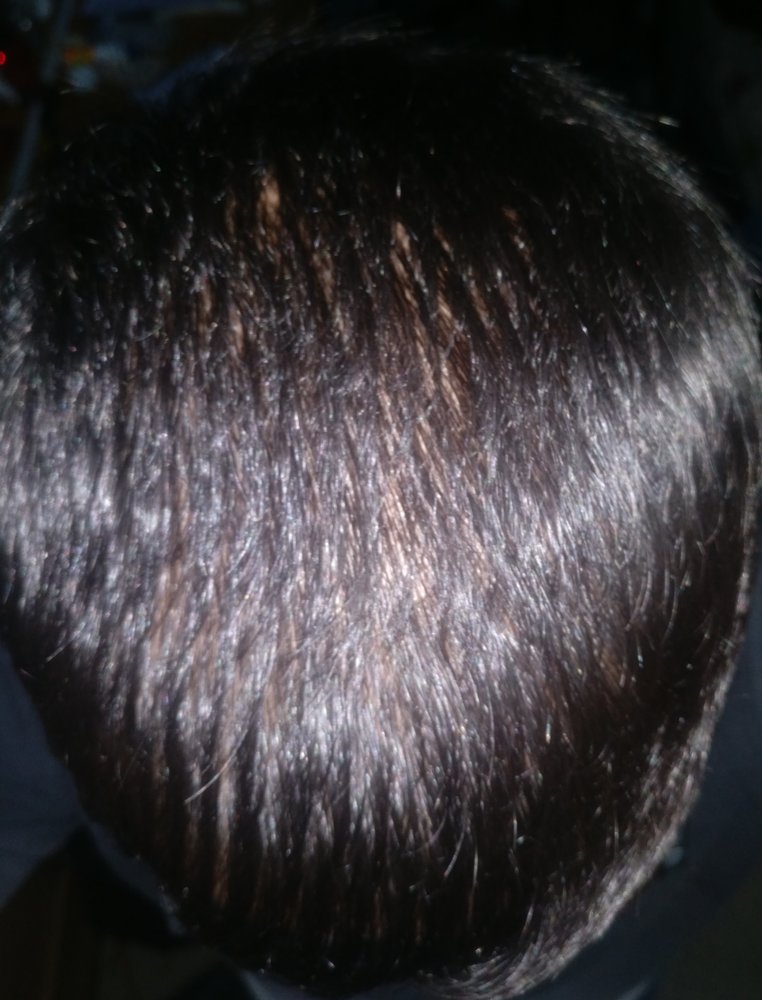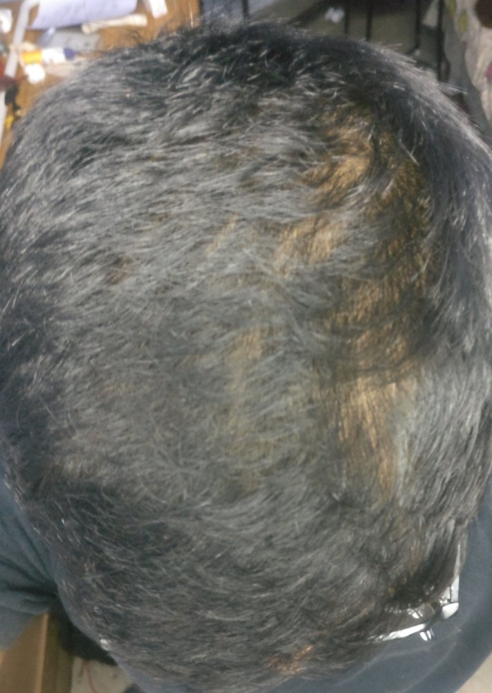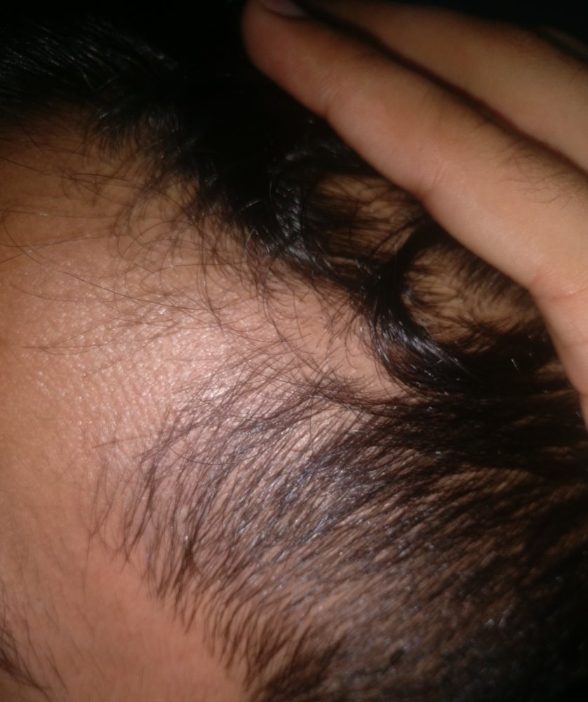 Hair line has recessed and hair density is very low on the crown.