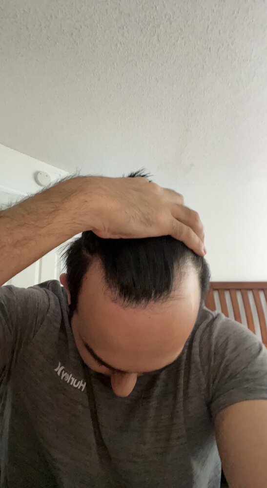 Born with a Norwood 2 type hairline, so anything even remotely balding for me looks terrible and Norwood 3+ I believe I am currently at 22.