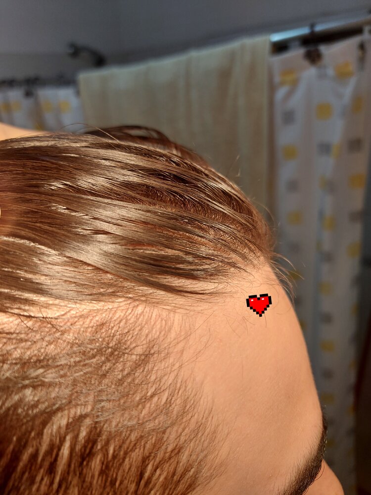 Here's how it looks currently under harsh lighting. My temples look lighter than the rest of my hair because I got a fade three weeks ago. The heart marks where my hairline used to be when I was 20-21, since I've been watching that single hair for a while, it grows very long and seems to refuse to leave my scalp. Maybe it's a fan of Die Hard and last stands just like me, hahahahaha. Thus, I'd say my hairline has receded half an inch since I was 20-21.