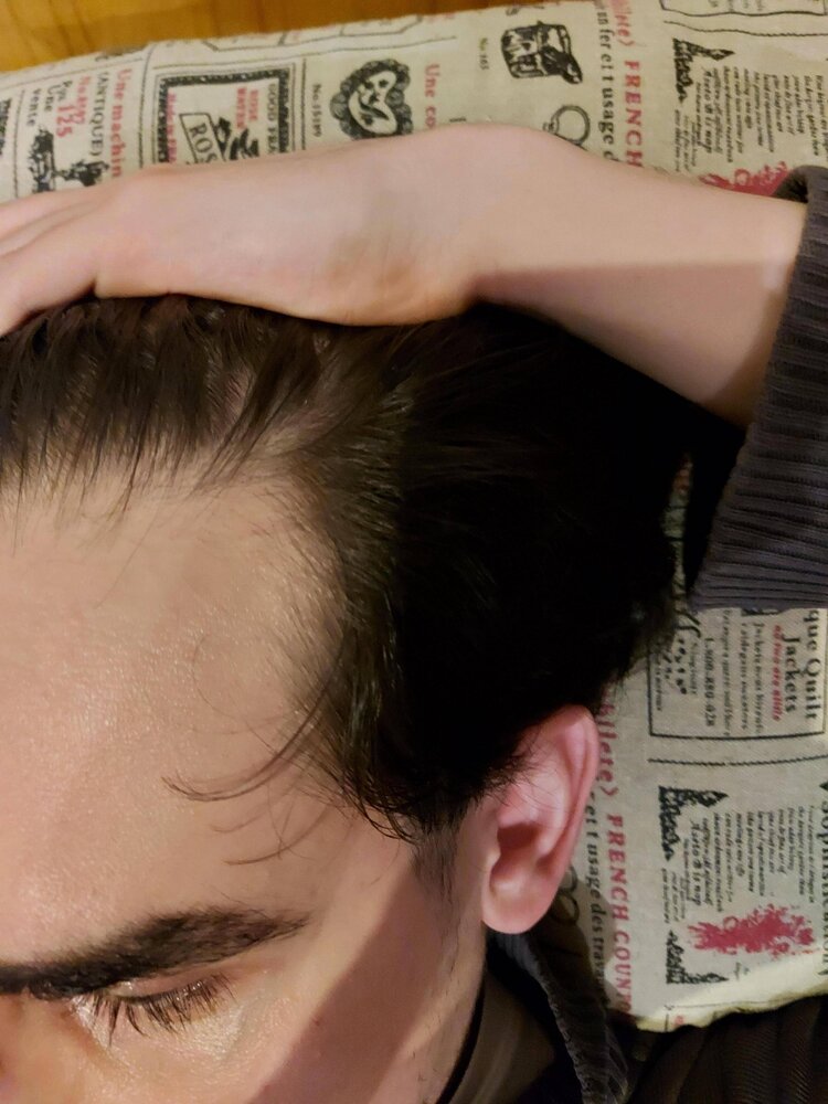 Damn, looking at these HD, close up pictures of my hairline scares me shitless and makes me eager to jump straight on finasteride and Min at the same time, but it's probably not a good idea. I'll see if I can get a 15th century torture device and start 1.5 mm dermarolling twice a week though. At least it'll make me feel like I'm doing something extra for the 6-8 months I'll have to wait before adding Minoxidil to the finasteride+Keto shampoo combo.