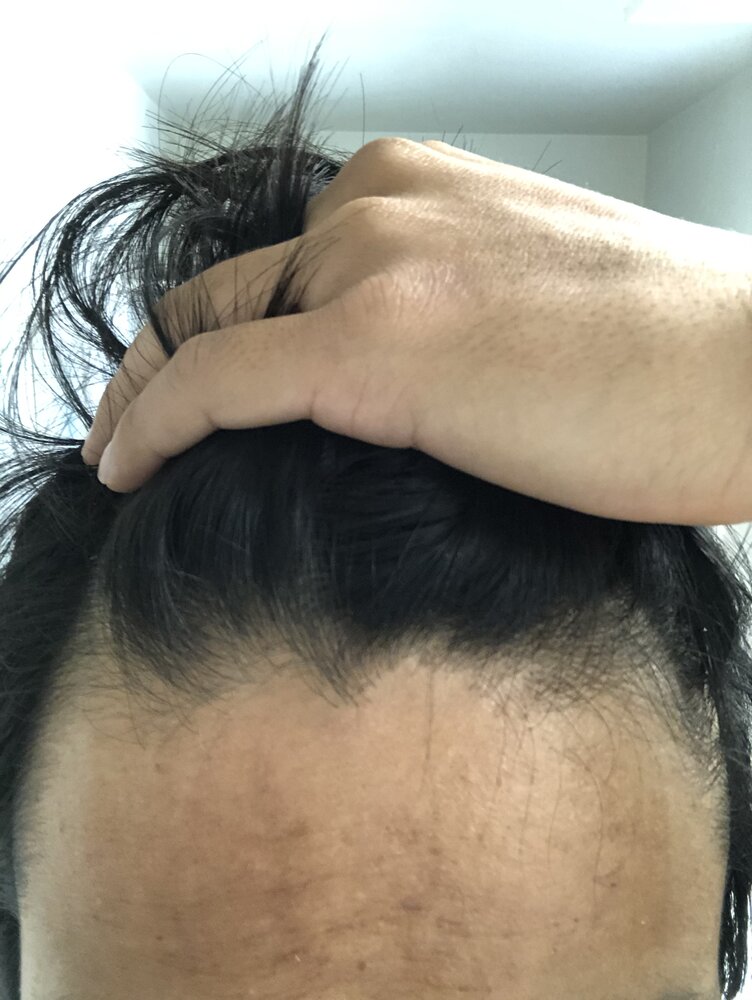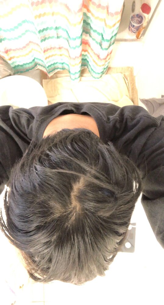 Dad is 60 and still has hair as well as my grandpa. My mother's dad had hair when he was old. Starting to notice spots where I can see through my hair to my scalp. Been reading on traction alopecia since I used to wear hats a lot/style my hair the same part. Think I started to notice my hair volume become less/hair thinning on top but couldn't tell if it was shedding or I was losing it from stress? would love some feedback if I was thinning or male pattern baldness, stress, etc. trying to stay off any medications as long as possible. Sorry if the pics are bad first time doing this.