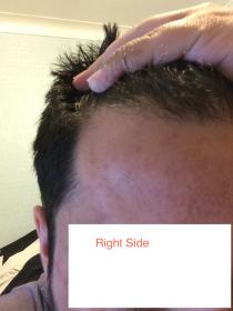 about eczema, however from some closeup pics I've found, it seems to me that my right temple of my head does actually have a slightly more receding/anglular hairline then my left, which is straighter, as you can see from the extra pics.