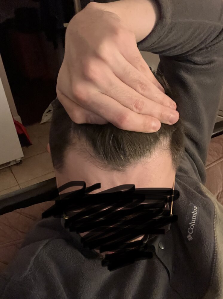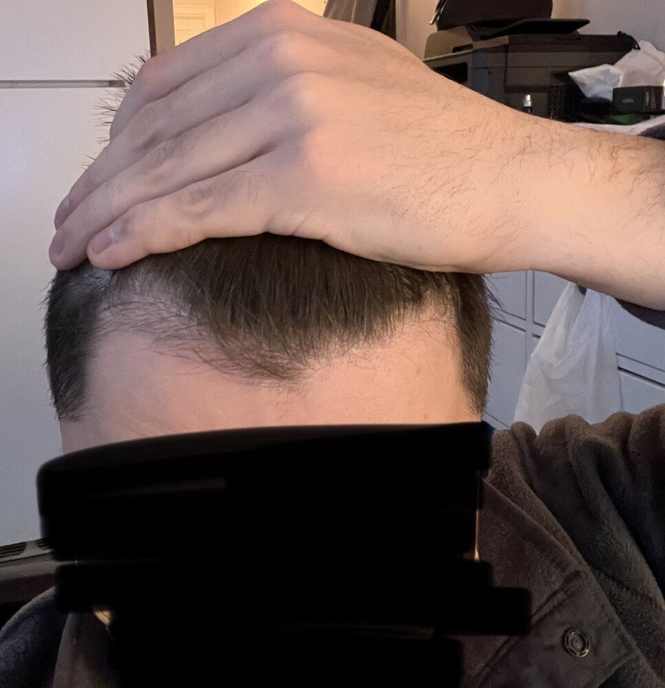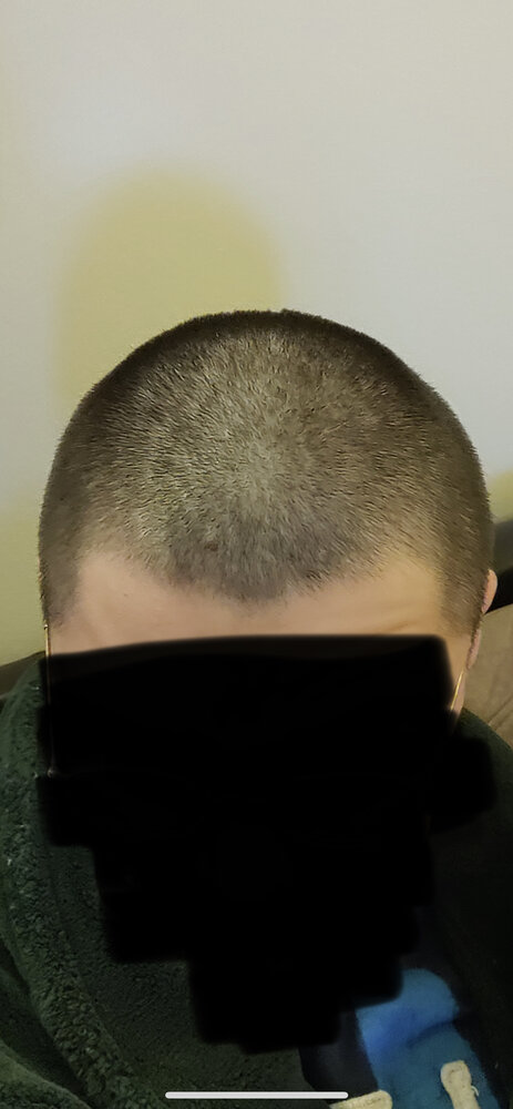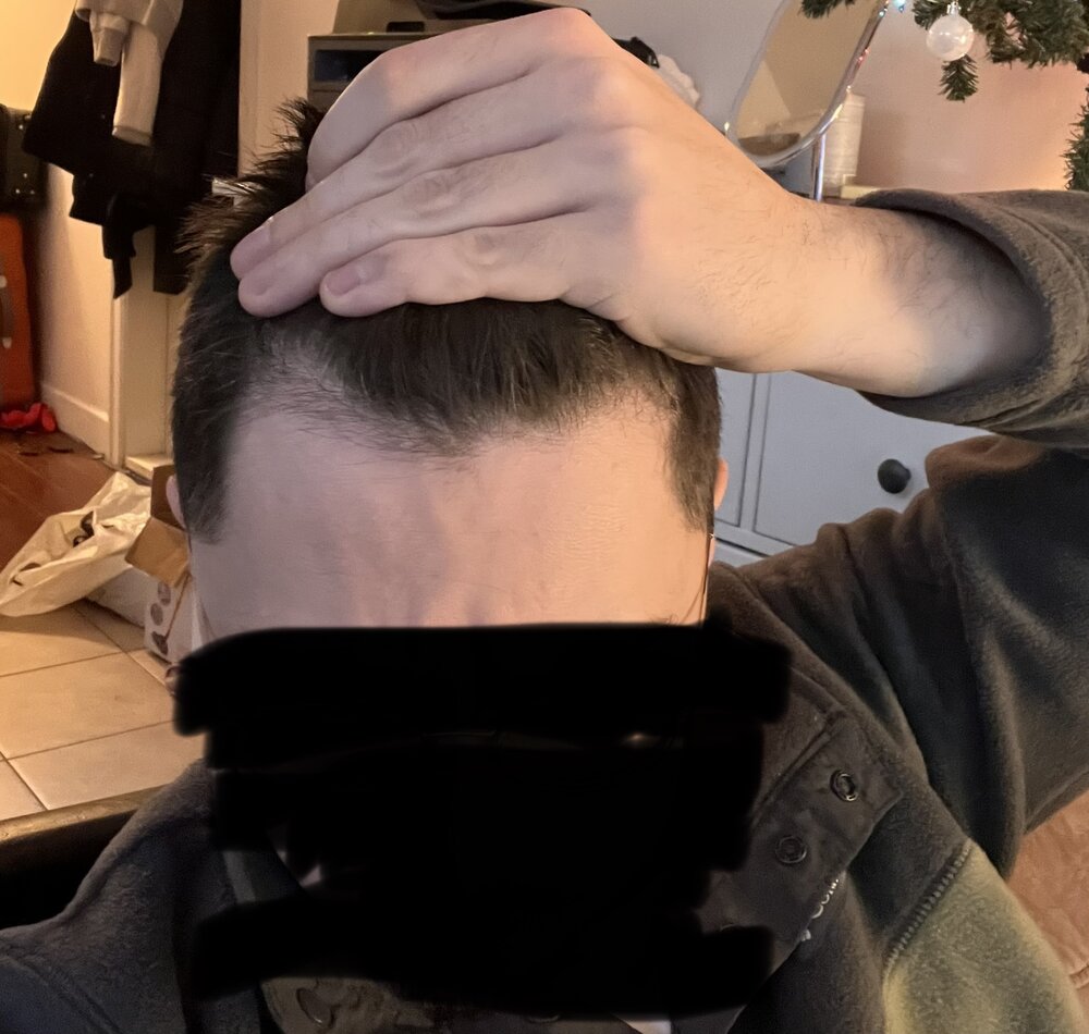 The shaved head pic was my hairline in May 2020 and the others are in December 2021. My girlfriend says I'm crazy but I feel as if there has been a lot of recession since then.