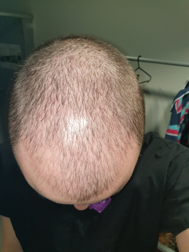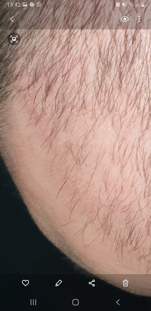It's a fine line about obsessing over this. You want to verify that your path is correct but many times, regrowth will sneak up on you just like baldness did. It's not necessarily linear in terms of growth. Regardless DR or derma-penning is great for skin and scarring in general and there can be cross-talk among follicles and the bio-feedback system. Regardless of hair, I expect to DR for life for my face, neck, hands, soles of my feet and scalp as it melts away scar tissue, cross-linked tissue, freckles, aging from the sun, etc. It is the beauty discovery, along with tretinoin of the century.post dermapen today- in the zoomed in pic of my right temple, are those new hairs coming through or am I just seeing what I want to see? Haha
