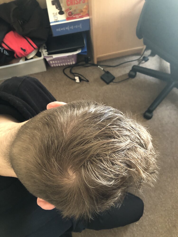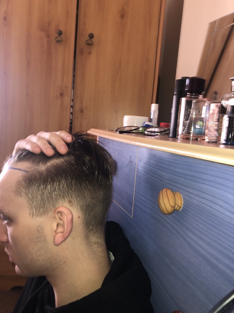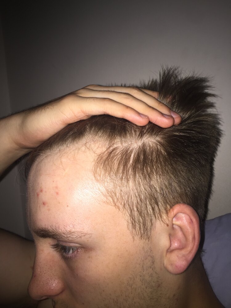 This is the oldest photos I have which is 3/4 years agoPost a pic of your hairline, when it was still where that blue line is.
