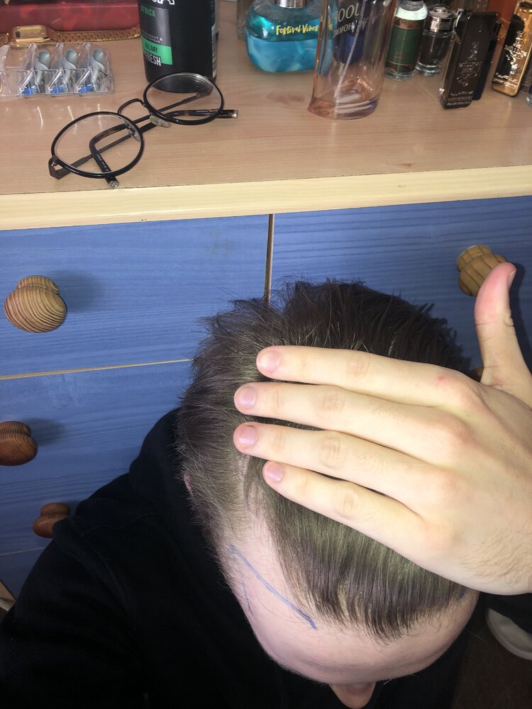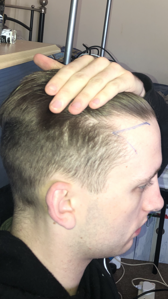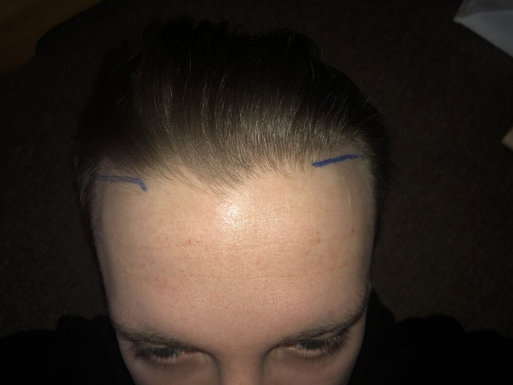 It was never there, the line is where I want it and measure as a normal hairlinePost a pic of your hairline, when it was still where that blue line is.