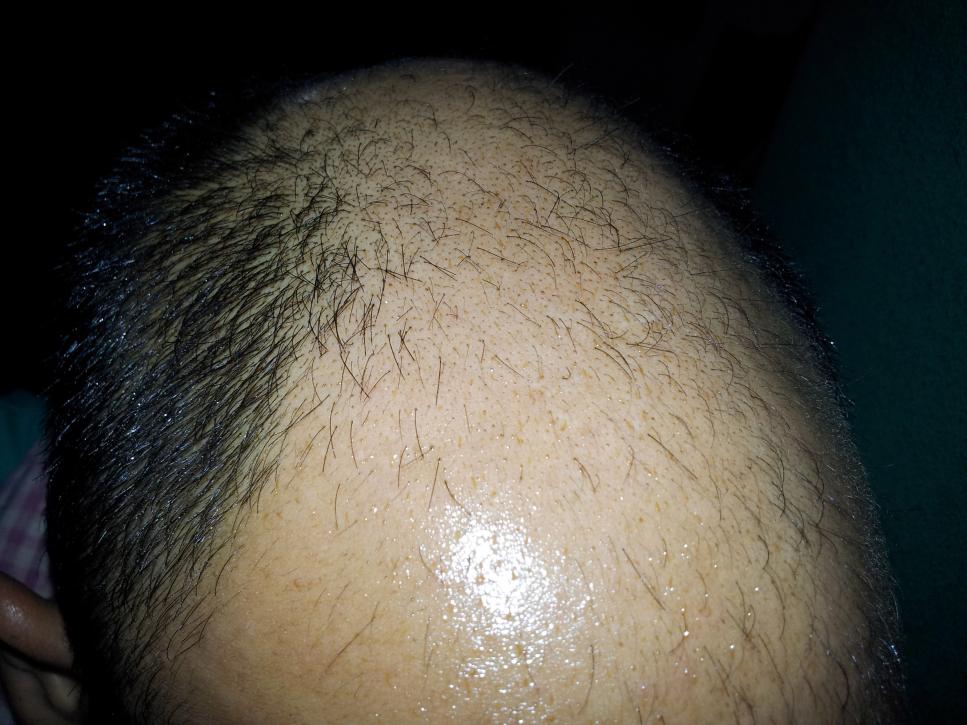 These pics are Just in time of starting my treatment, Pardon me for clarity and the unprofessional way the pics are taken, Coz i was not serious in treatment although i was giving this a try. But I guess You can pretty clearly asses my loss.