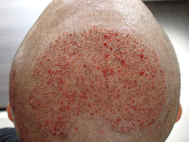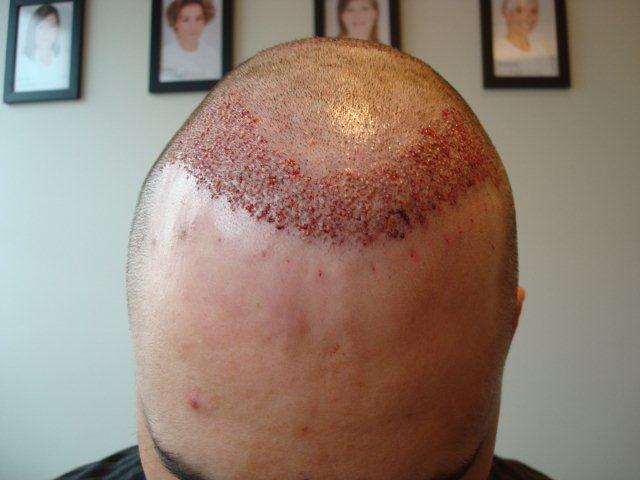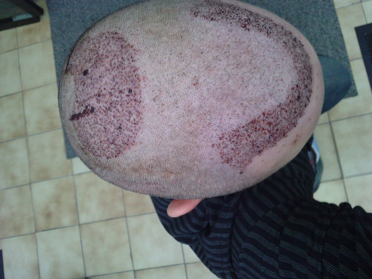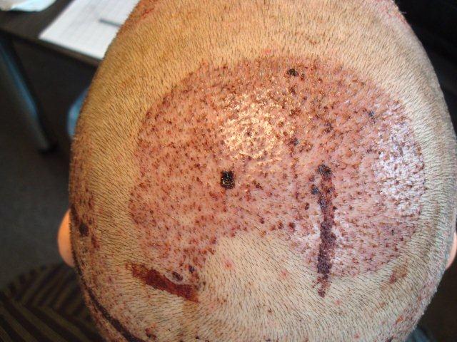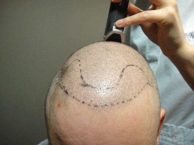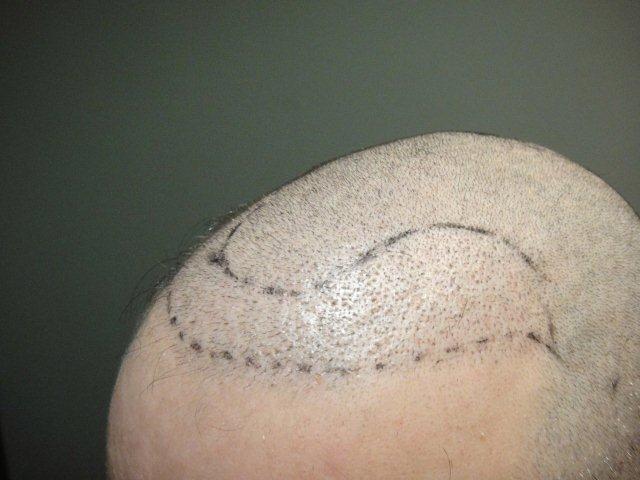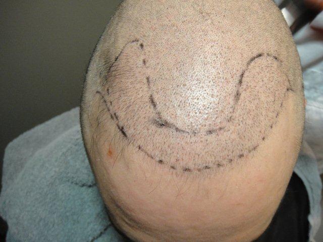 i filled in some questionforms , and they marked the zone that need to be done in the front , after that they shaved my head , now you can see my scar from my first hair transplant in istanbul 2 years ago , it was done with trico-closure , but i had some streching of the skin in the right part....