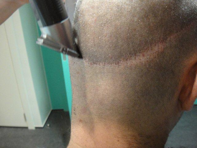same procedure, stun again the donor area , now the right side, the other day they did the left side...