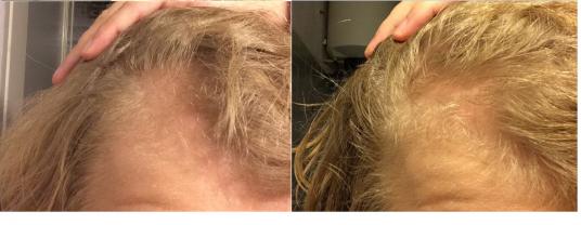 Hair line is not better, but volume is. I feel like the small hairs are bigger than last month. Can't be sure. I know not all pictures are easy to compare, but any opinions?