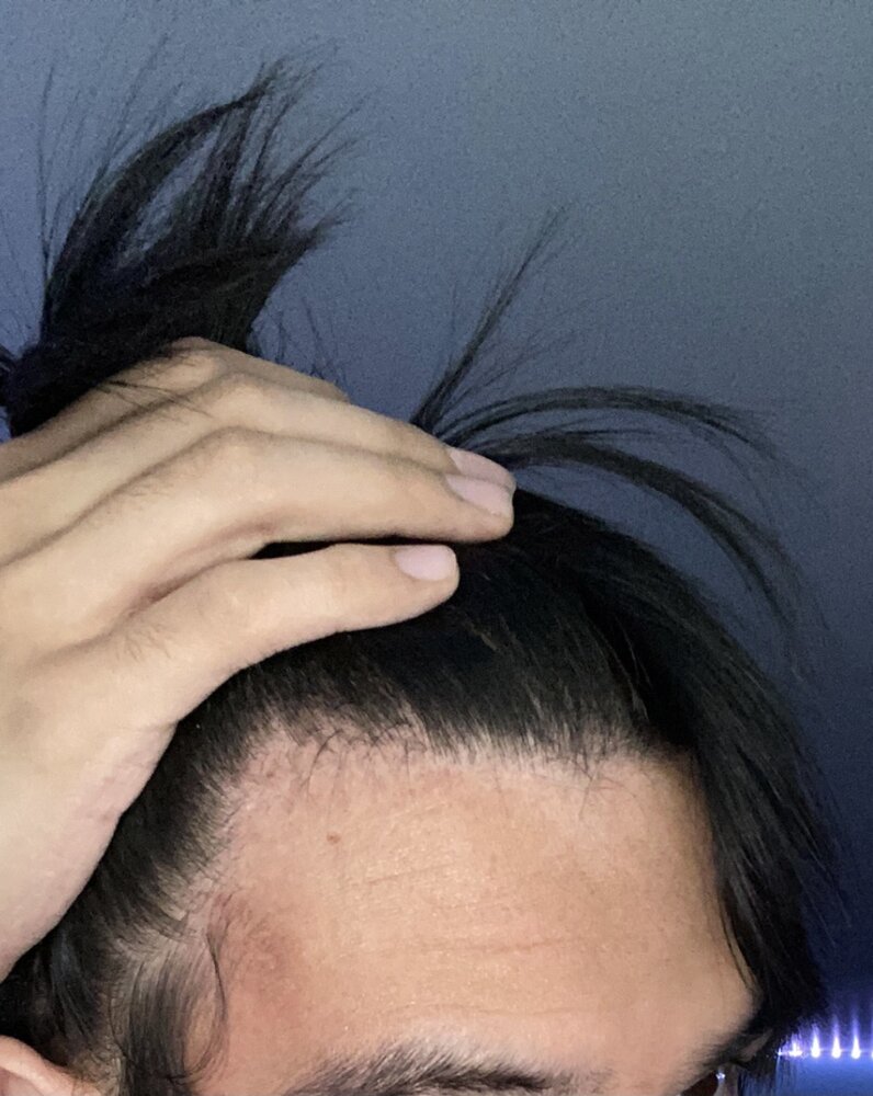 Yeah I don't know where the redness came from, I think it might be me from being ocd about it and stressing tremendously about it daily! It's only one side that seems to be creeping up. I have noticed that since I was 19 years old, the other side of my head seems relatively the same. Would finasteride alone be enough? What should I expect while taking it? Can it cause a huge shed and make me worse from baseline? Would this be considered norwood 1.5? I notice I don't shed too much unless I really play with my hair, maybe 20-25 hairs a day I shed with 5-7 of those being in the shower. Since I have long hair should I part my hair and then look at the hairline? I hear that long hair can give off a weird looking hairline, but I don't want to buzz it to really see where my hairline is at.Hairline does look to be creeping up. But like TD said, there's no way to really tell if it will stop or not.