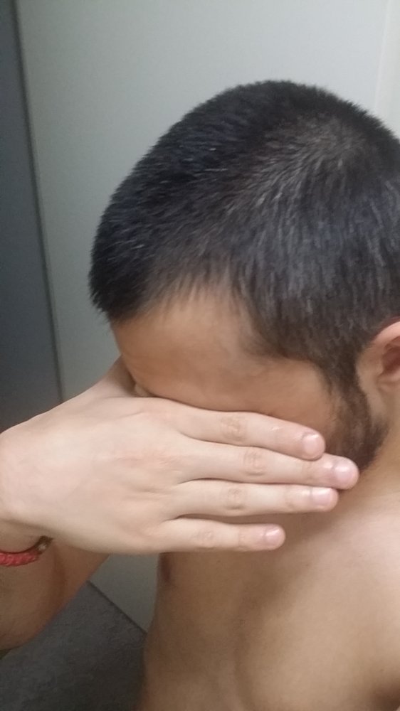 So guys almost one month after my last post I thought of giving an update with new pics. My hair is somewhat longer and also greasier. And i purposly stood under heavy white lightening. Am i going towards a nw3 or does my hair just part in some weird way?