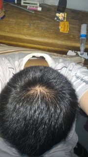 Hi Everyone, I'm 29 years old, Asian and my dad is bald on the top (he says he got it from years of showering in hot water, but I can't confirm this.) my mother's side isn't bald (at least her father.) I am not taking anything for my hair but I want to get some opinions if I am balding or if it is a cow lick..