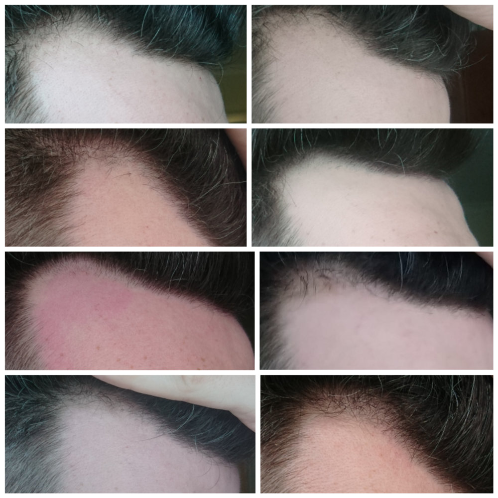 Please see the photo attached. The first picture is the most recent and then goes back towards 10th April when I started on big 3...To me it seems that my recession is only getting worse and not actually improving. I may be being self critical but want some strangers opinions so I can truly determine what is going on. Please note in one of the photos I'd actually shaved some of the longer thinning hairs (the photo that my forehead looks most red). Honest opinions please.View attachment 121843 View attachment 121843
