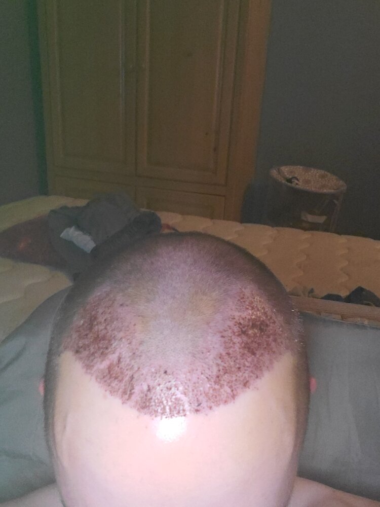 Scabs have came off today as well as hairs formed with the scab. Scalp is clean today with the remaining transplanted hair which will likely be gone within the next 2-3 weeks