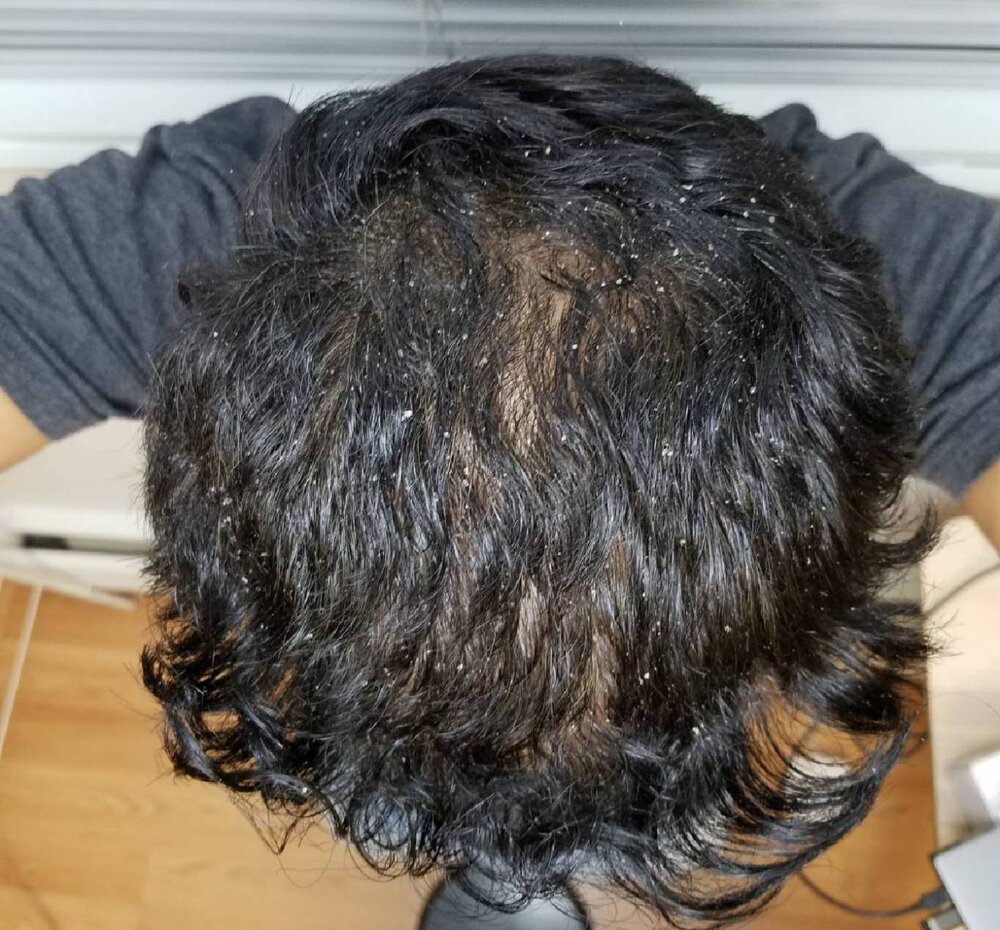 Another hair problem I have is a dry scalp which looks like intense dandruff and my scalp is usually itchy. A few months back, I was regularly scratching a particular spot in the front of my head which is where I noticed the hair thinning first. Thinking it might be traction alopecia, I stopped scratching and the hair improved a bit in that spot.