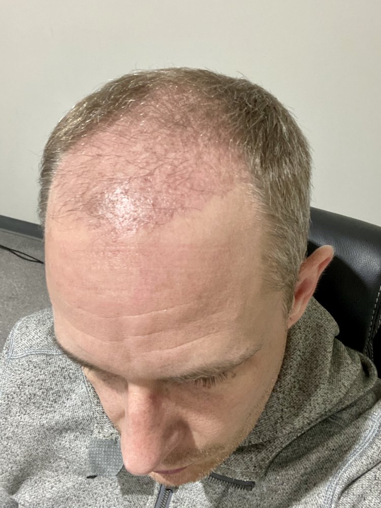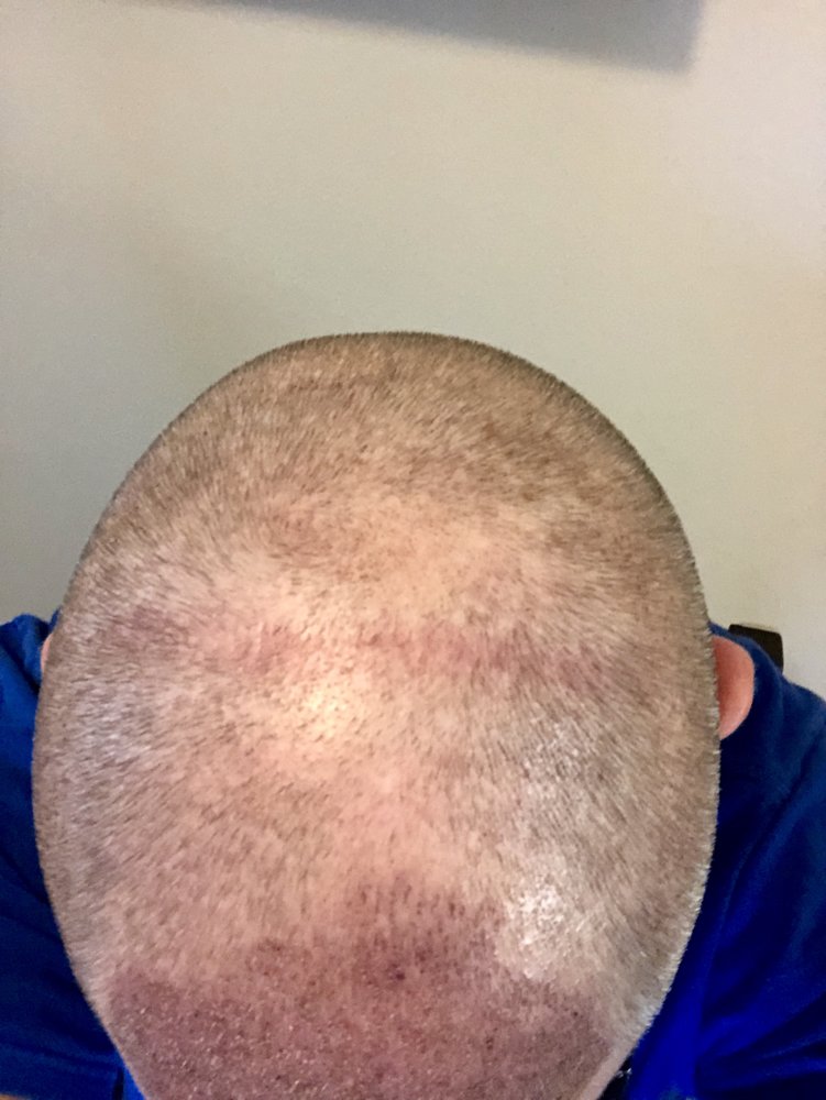 Another 2 months have passed. Beginning to see baby hair growths and feeling returning to the transplanted area. Still about 40-50% numb. Minor itchiness throughout the head. The redness has not fully subsided in the transplanted area yet. There is no pain at all now. Its been 10 weeks since surgery.