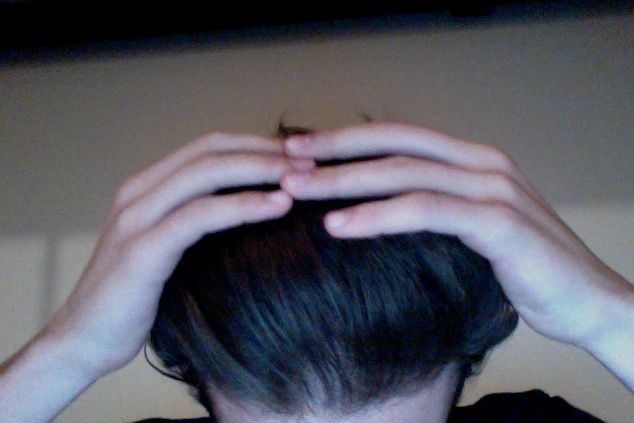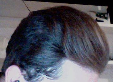 my haircut may vary in some pics, because ive parted it in different ways for HairLossTalk.com.