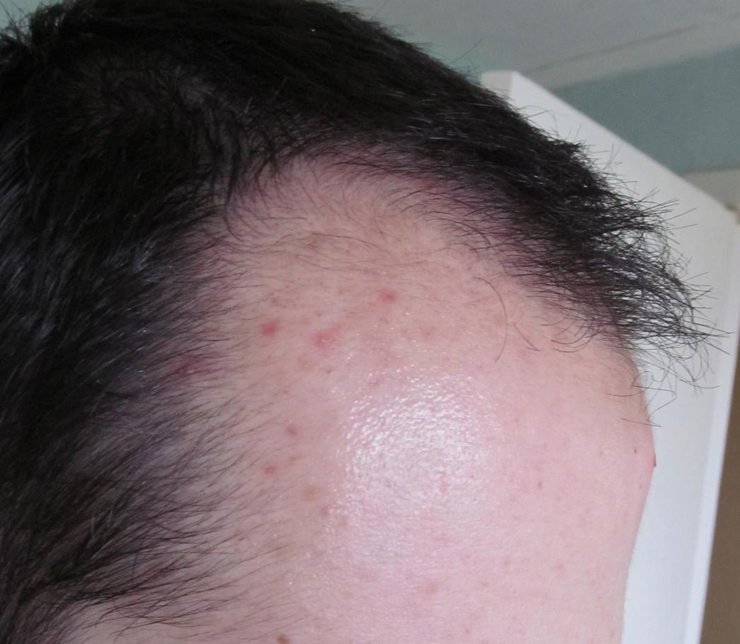 I had a quick attempt at capturing some of the vellus hair in pictures but its difficult. From any kind of distance it just looks like I have a darker forehead in these vellus areas. The 3rd picture is the front taken from above under a light.